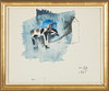 Blandteknik på papper, bildyta 32 x 40 cm, inklusive ram 39 x 47 cm . Signerad och daterad M. Pyk 1965.