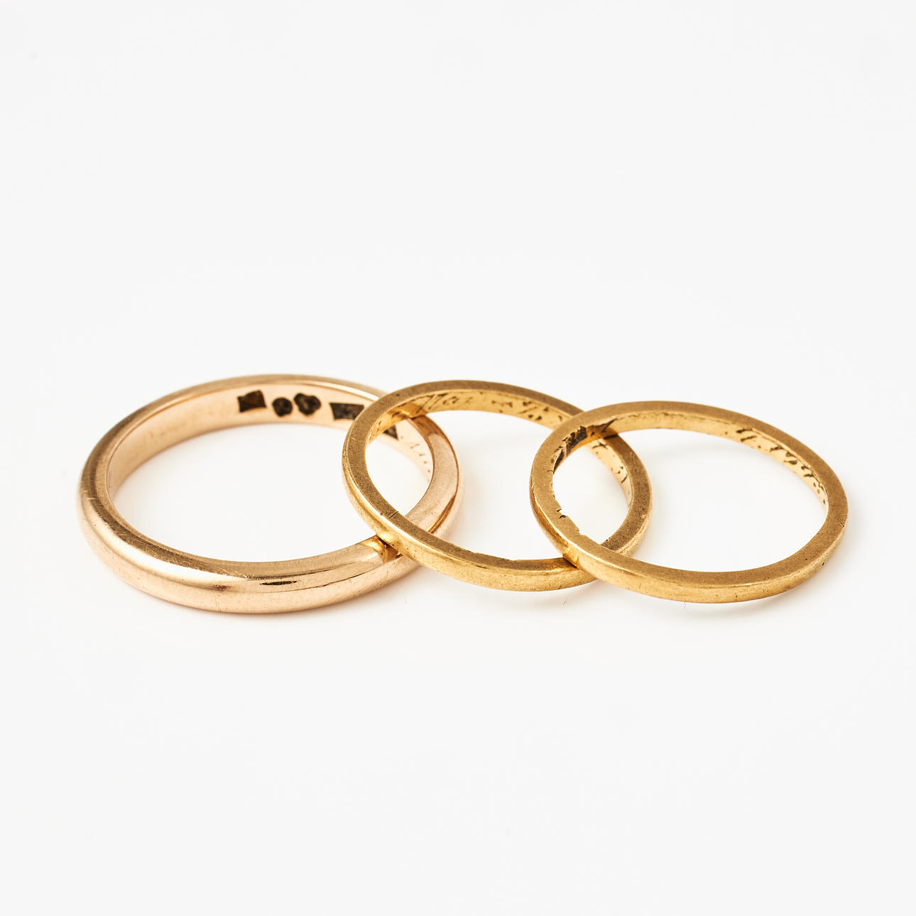 VIGSELRINGAR, 3 st., 18 resp. 23 k guld.