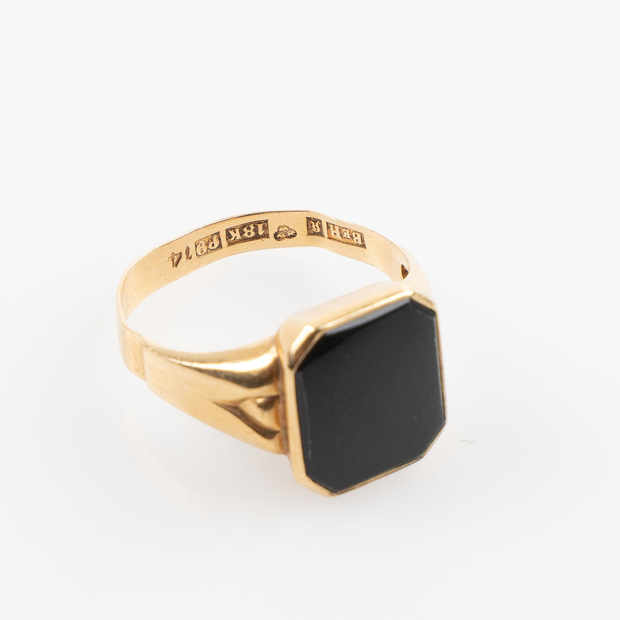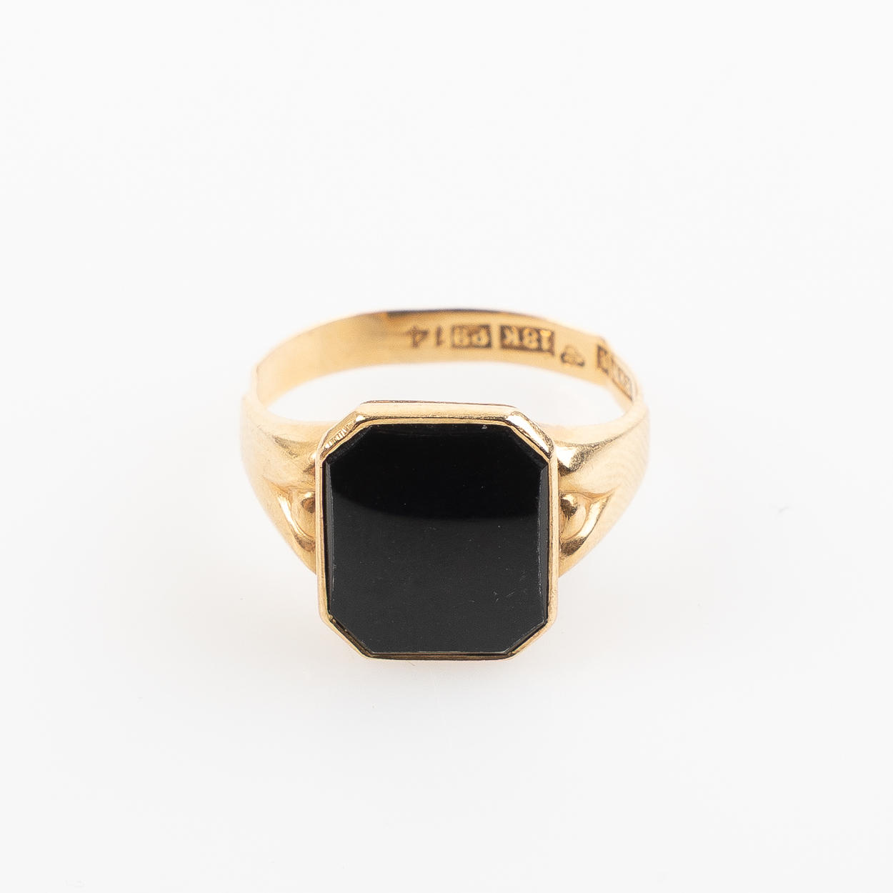 Infattad med onyx. Ringstrl. ca 17,5 mm. Vikt 2,5 gram.
