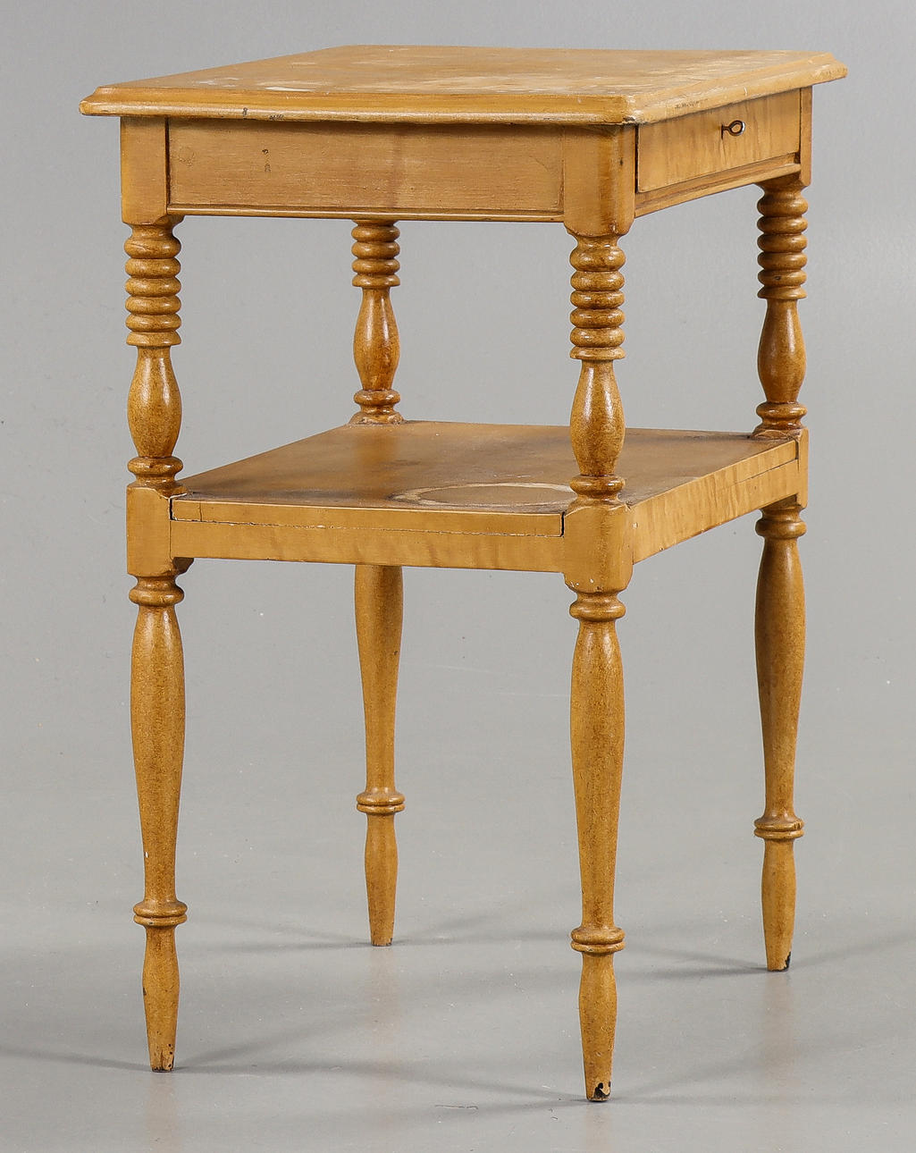 Svarvade ben, gulmålat.
