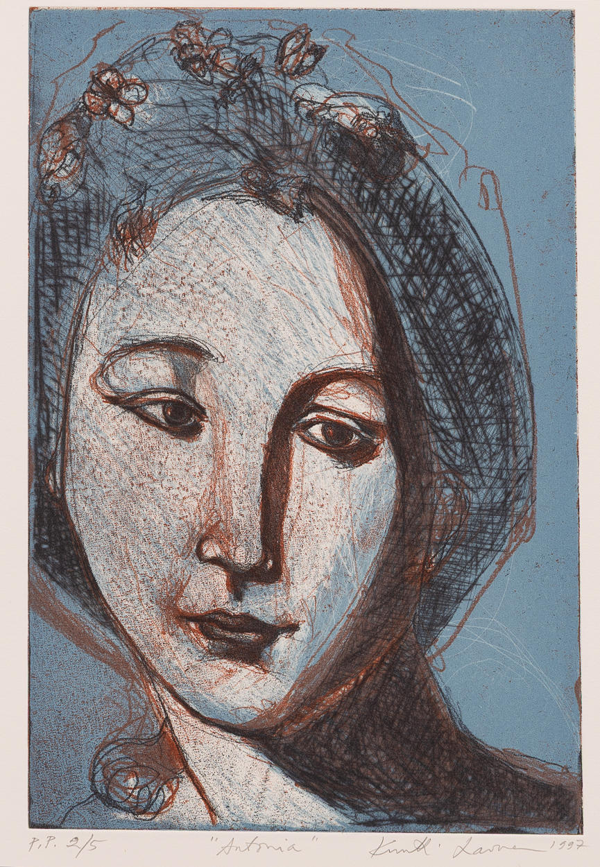 P.P, 2/5, signerad Kuutti Lavonen, daterad 1997, ca 32 x 22 cm, bladmått 54 x 40 cm.