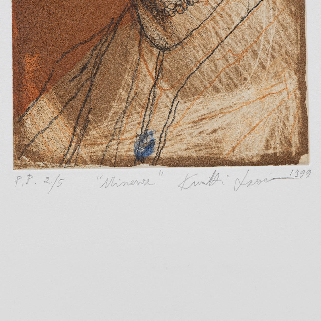 P.P. 2/5, signerad Kuutti Lavonen, daterad 1999, ca 27 x 14 cm, bladmått ca 53 x 39 cm.