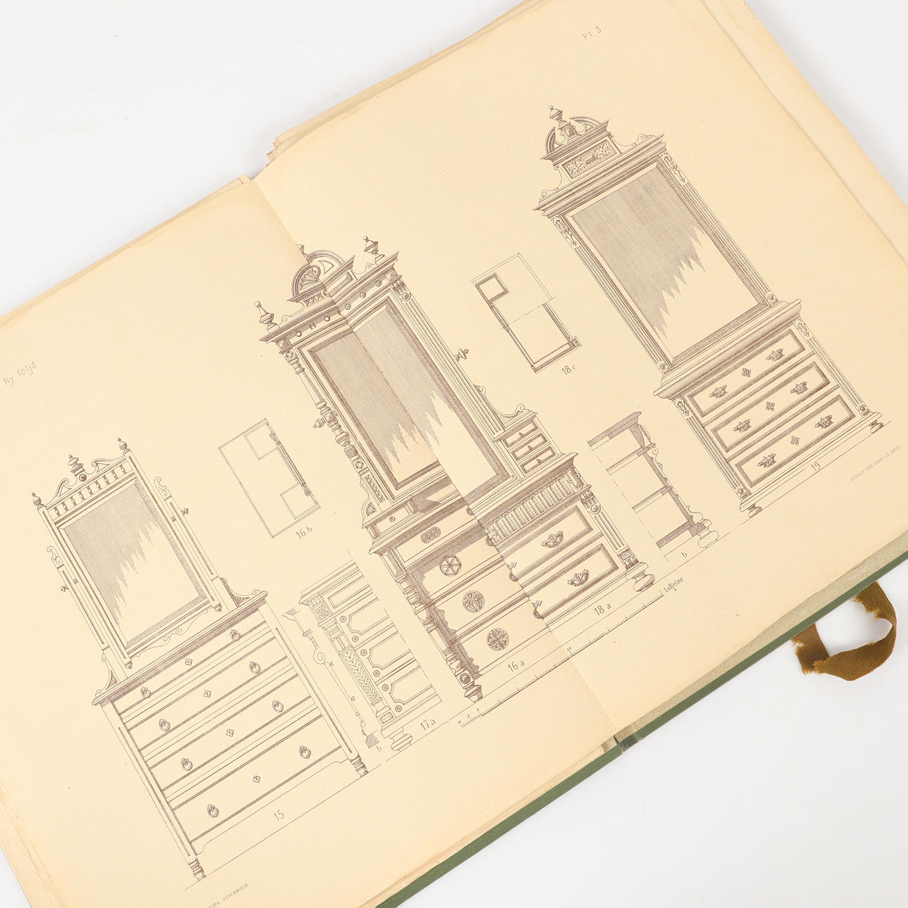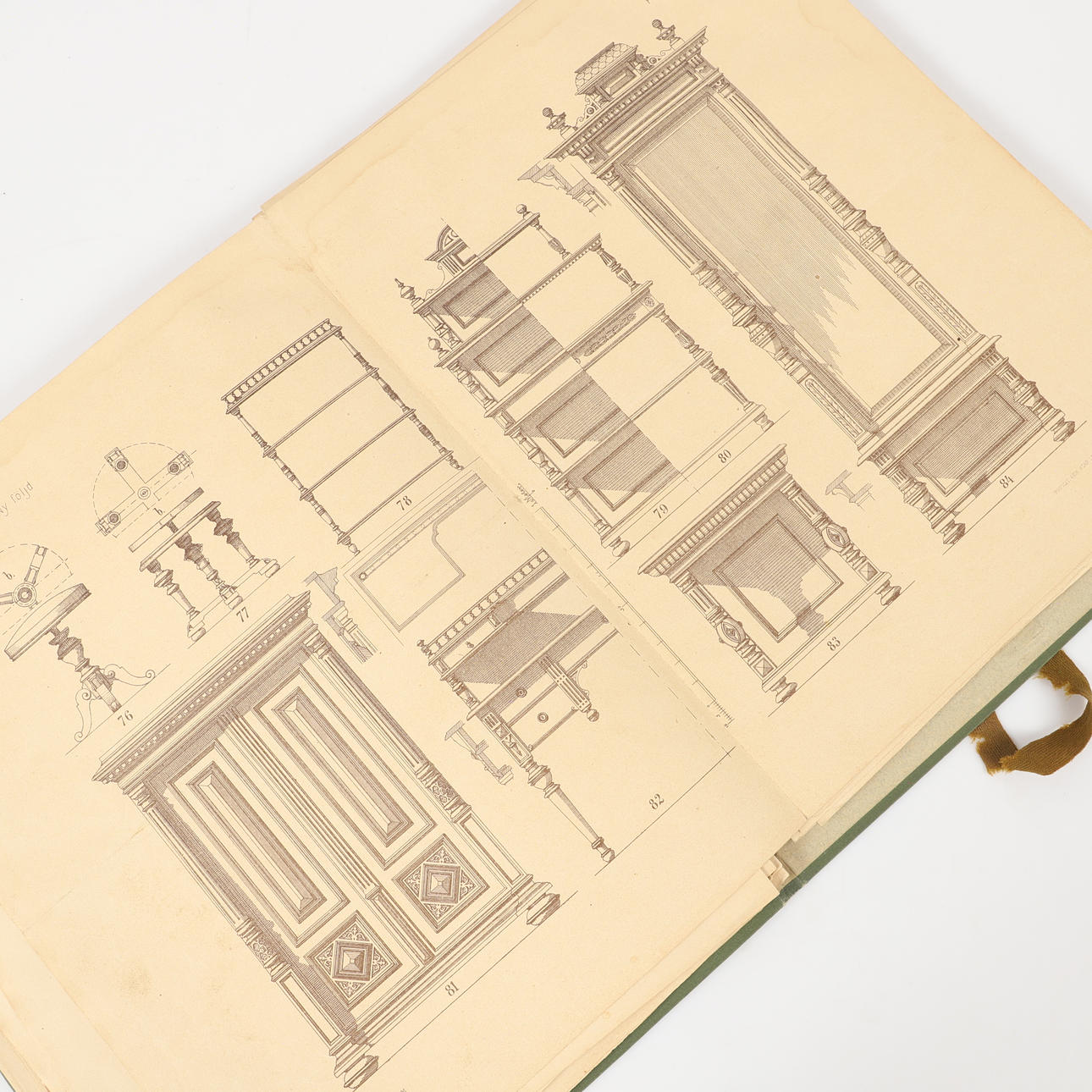 30 stycken plancher om tillsammans 174 ritningar i bestämd skala, de flesta med genomskärniongar samt 60 listverksdetaljer i naturlig storlek jämte beskrivand text