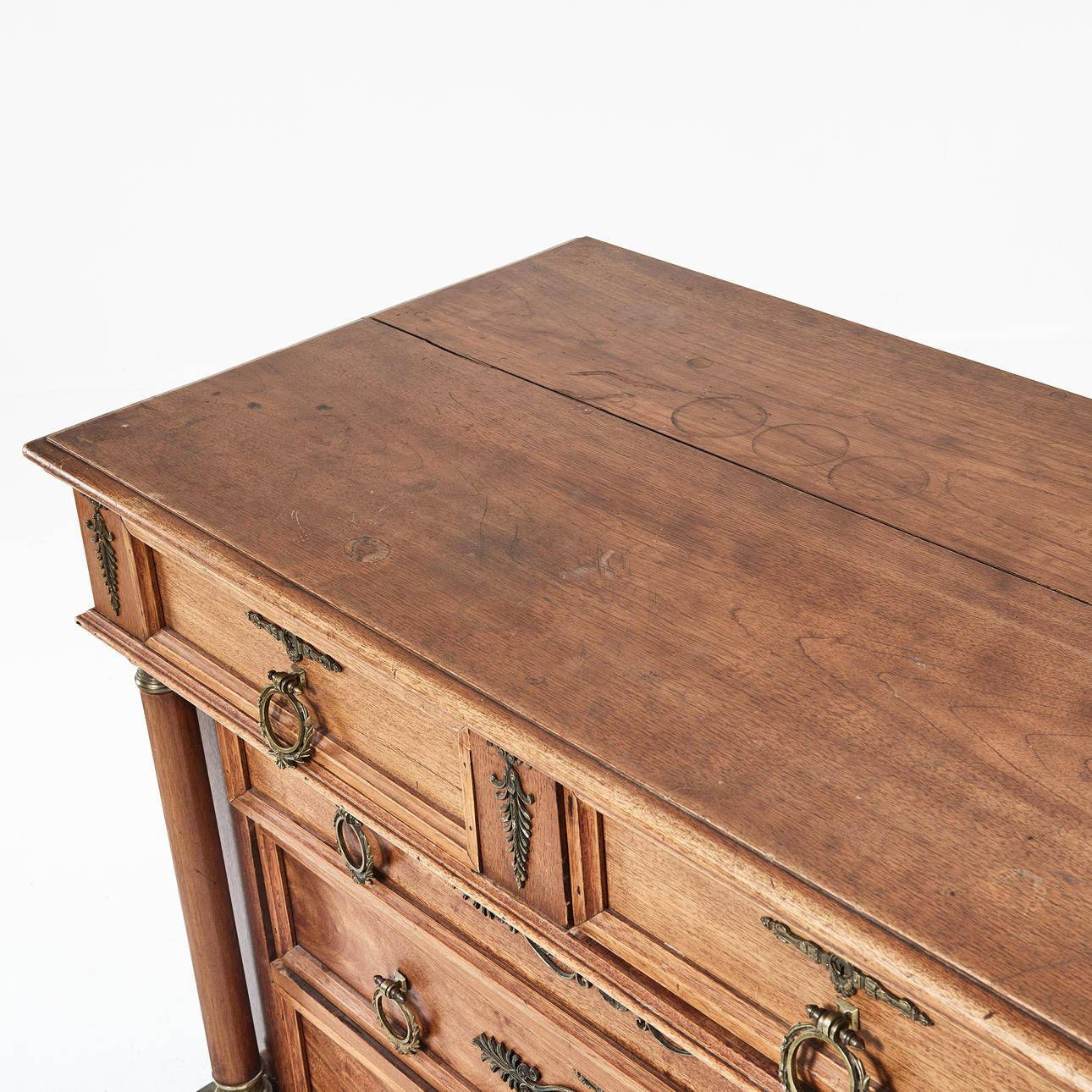 Bruksslitage, lagningar, torrsprickor, fläckar, märken.