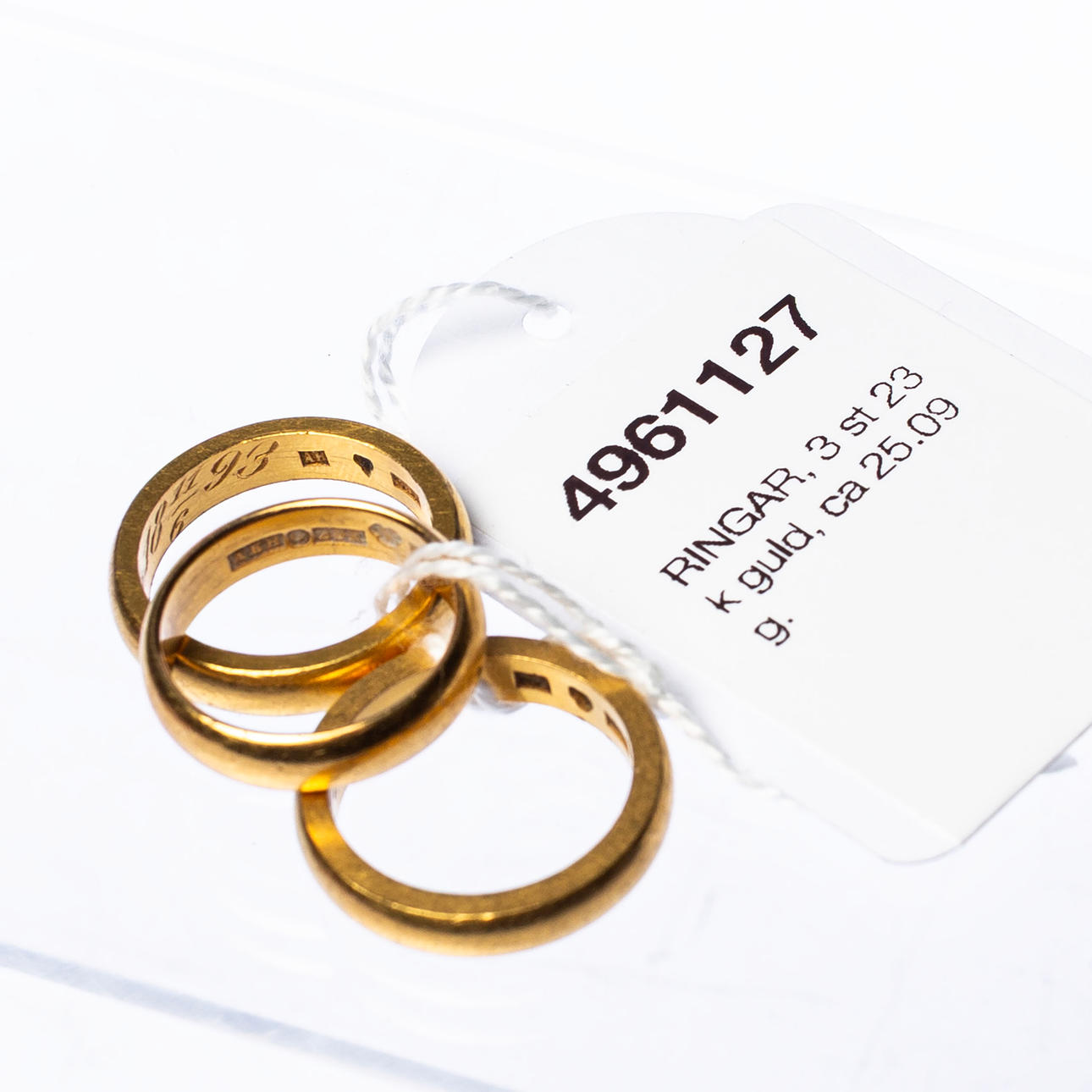 4961127. RINGAR, 3 st 23 k guld, ca 25.09 g.