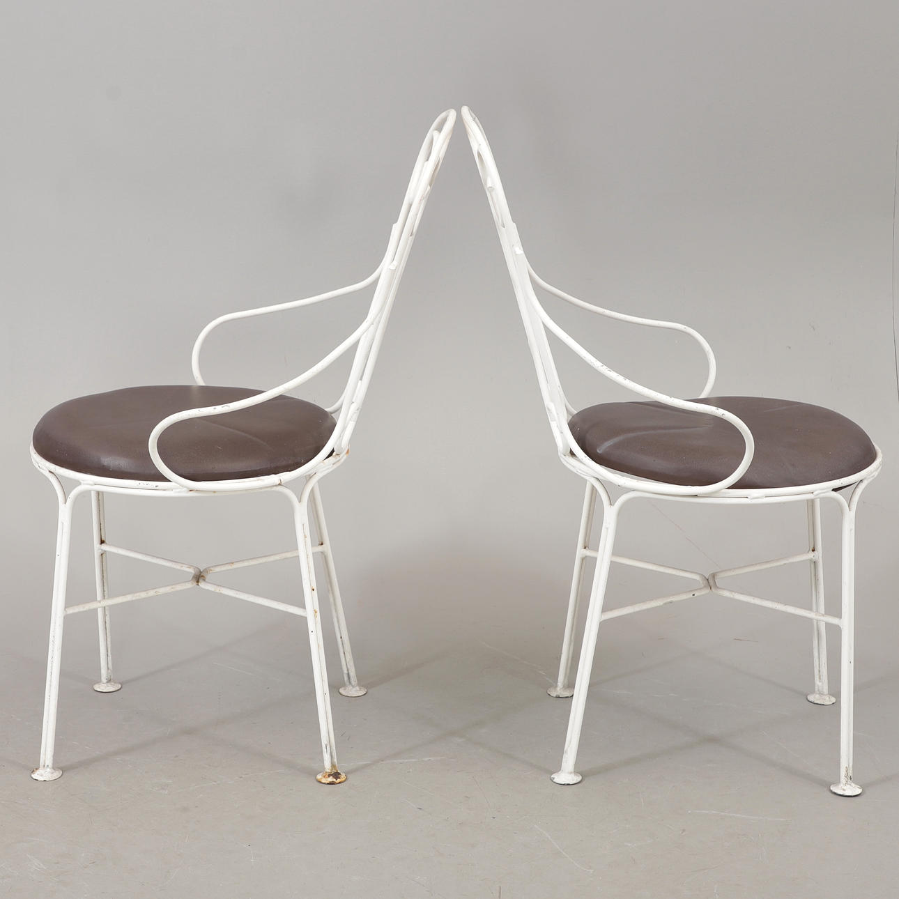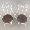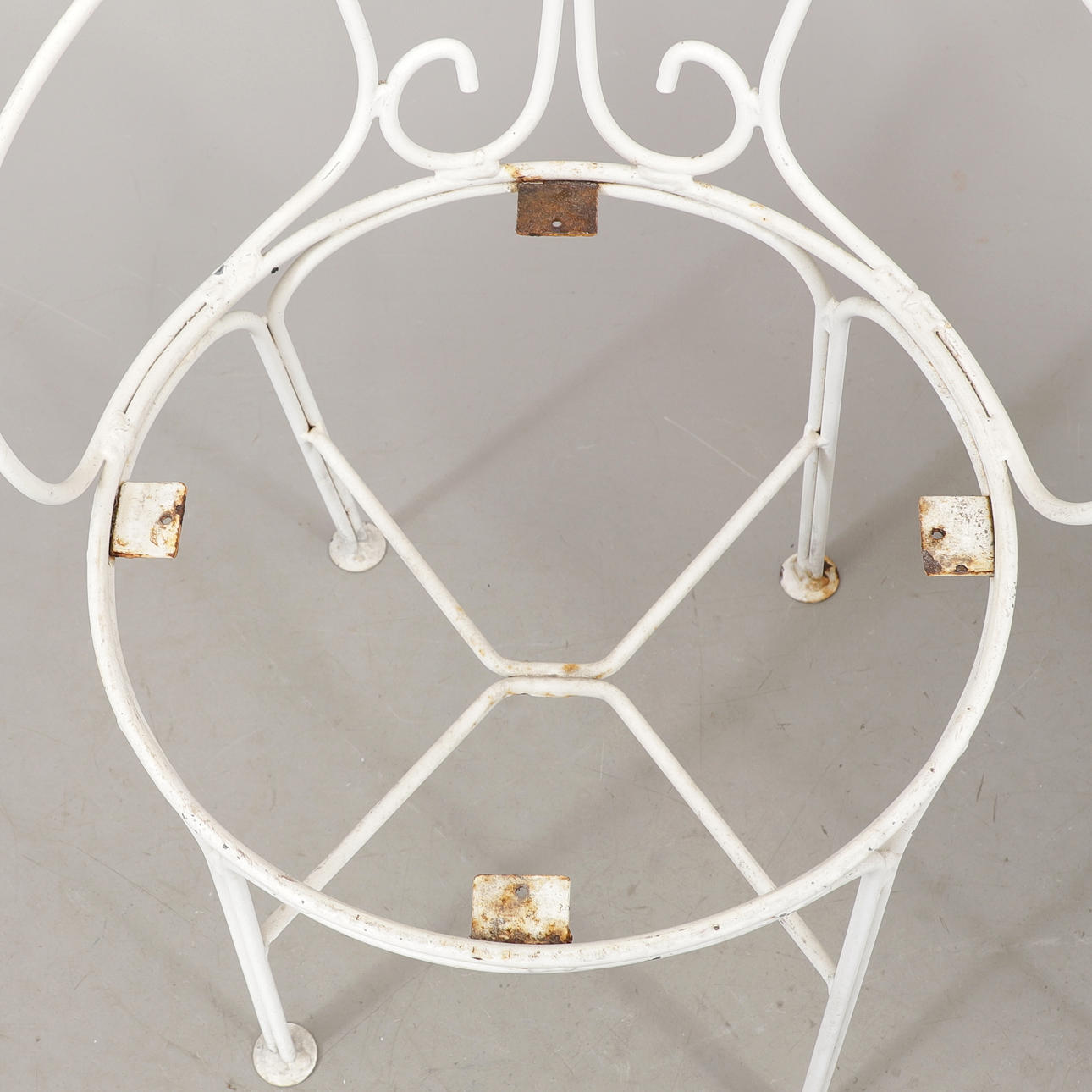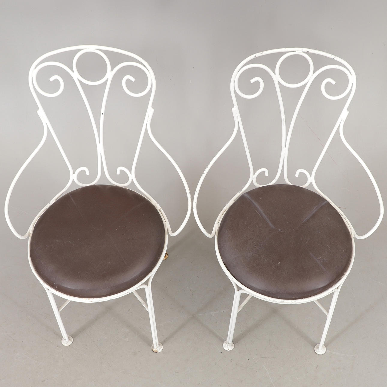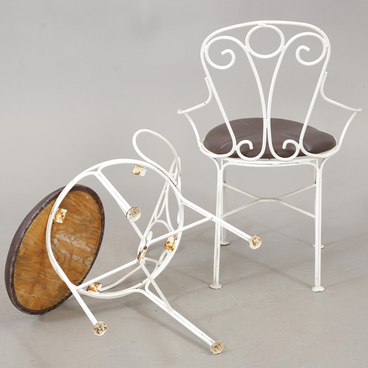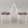 Märken i sits, färgbortfall, rost, fläckar, en sits med skada i trädel. Sitsar delvis lösa.