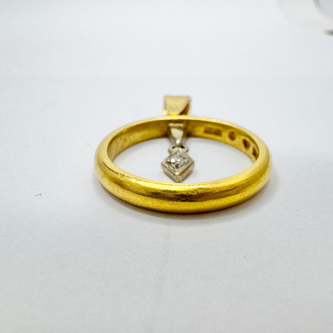 Omarbetad ring, ögla och inre dekoration (med liten diamant) i 18k guld.