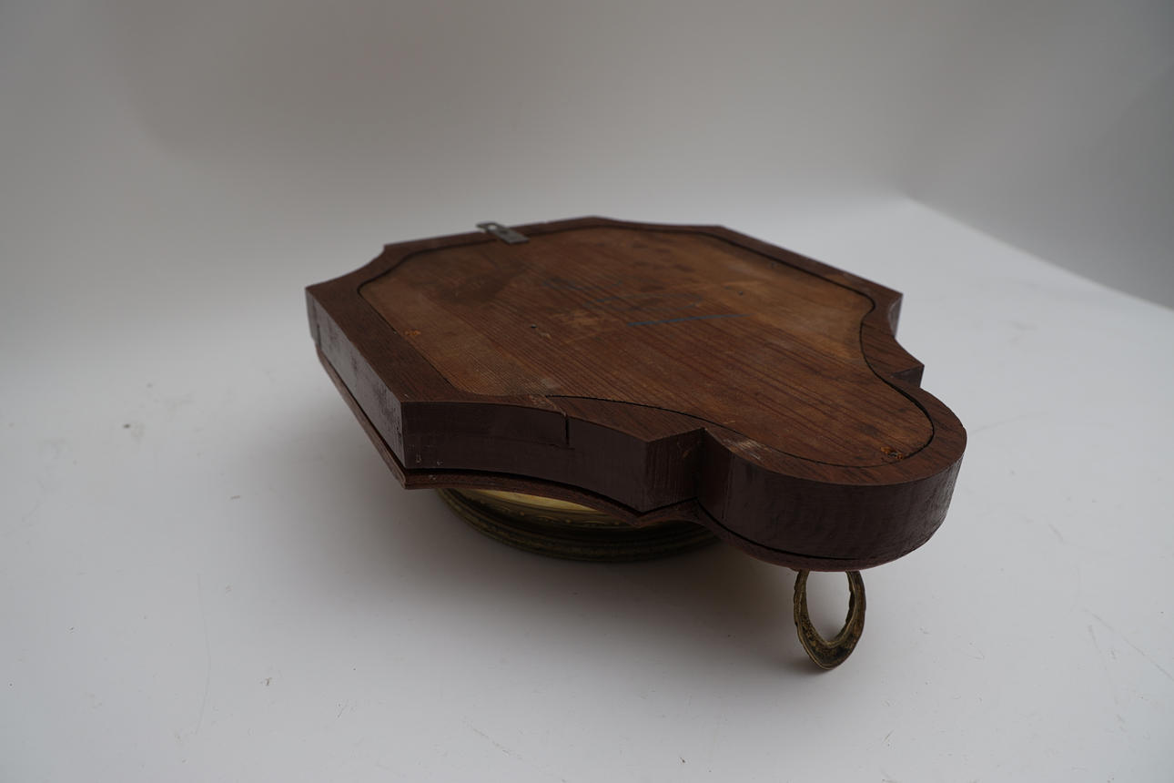Ek och mässing. Nertill med lejonmaskaron.