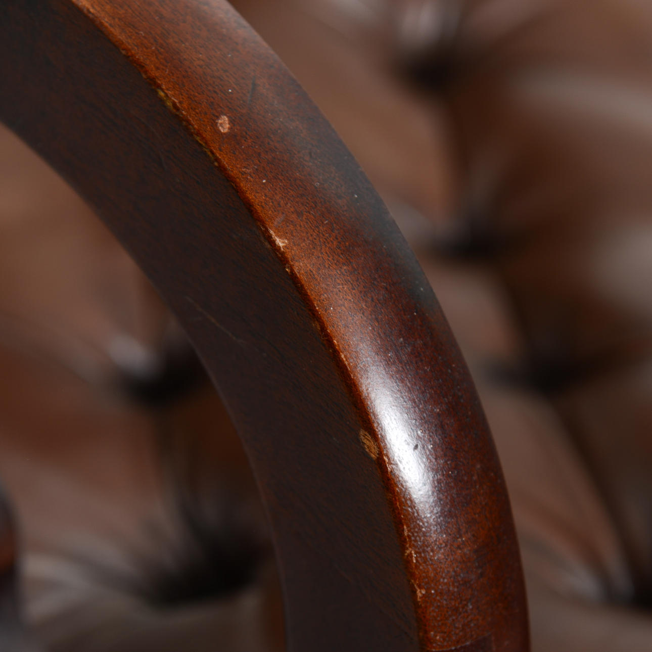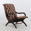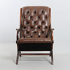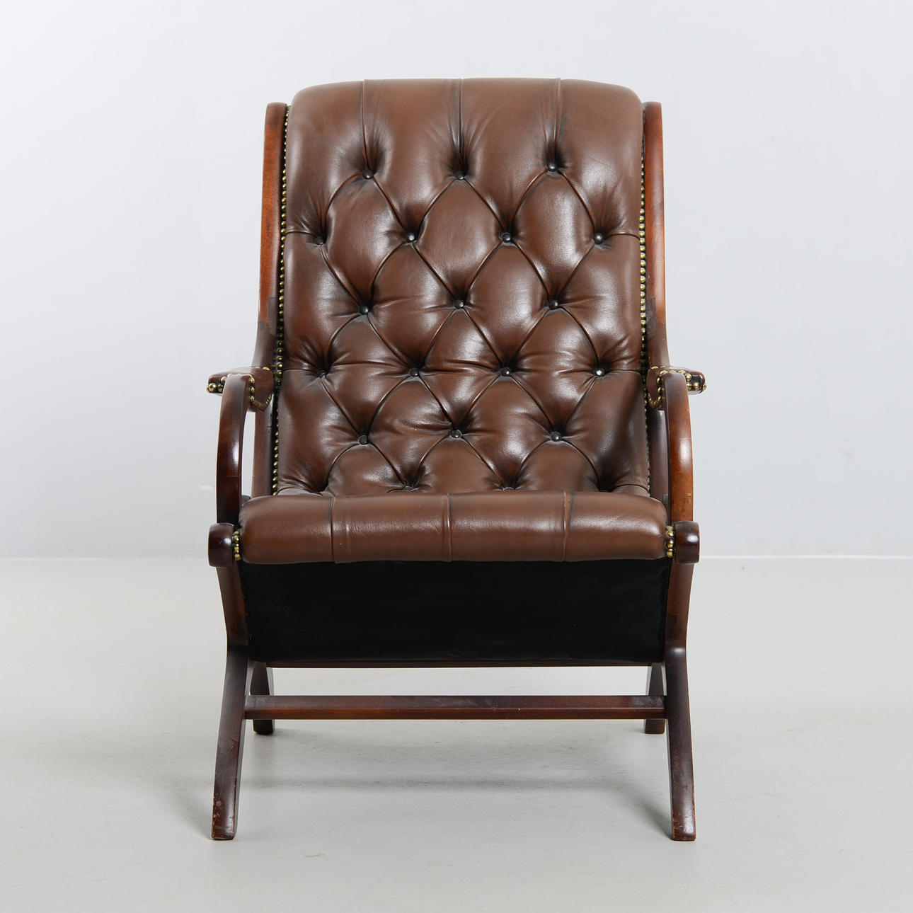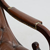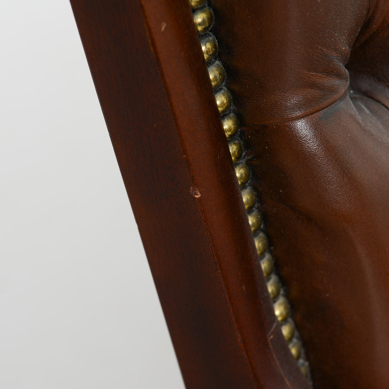 Skinn & mahogny. Sitthöjd: 40 cm. Rygghöjd: 86 cm.