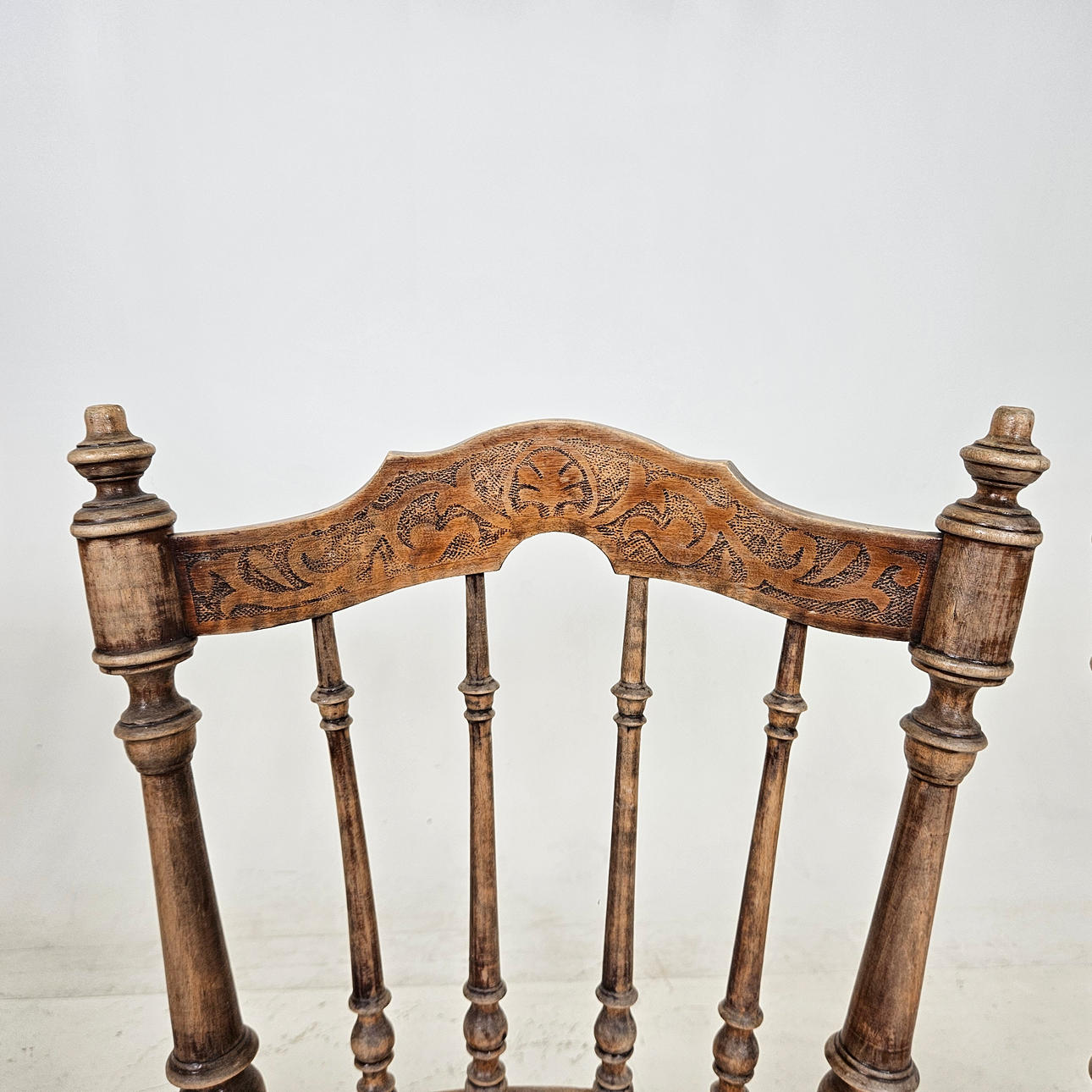 Spjälor i rygg. Höjd ca. 93, sitthöjd 45 cm.
