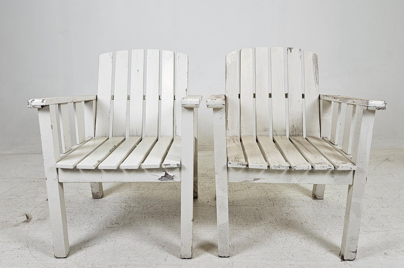 Bemålat trä. Fåtöljer, ett par, höjd ca. 75, sitthöjd ca. 40 cm.