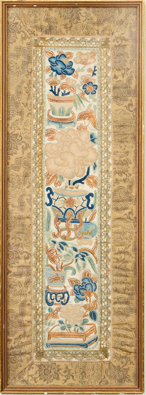 Broderi med metalltråd, ca 59 x 20 cm dagermått.