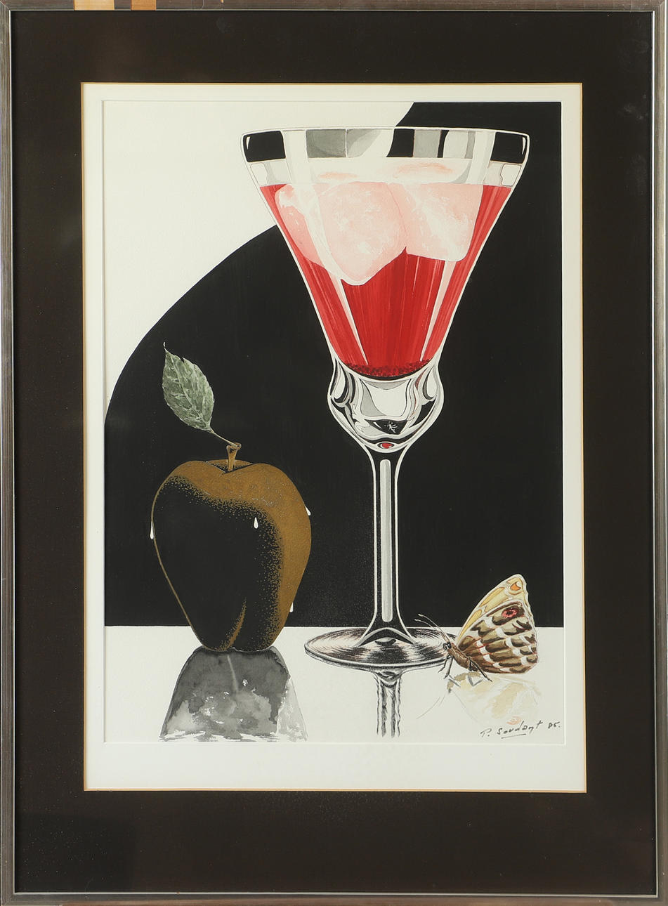 OIDENTIFIERAD KONSTNÄR. Drinkglas, signerad P. Soudant -85.
