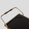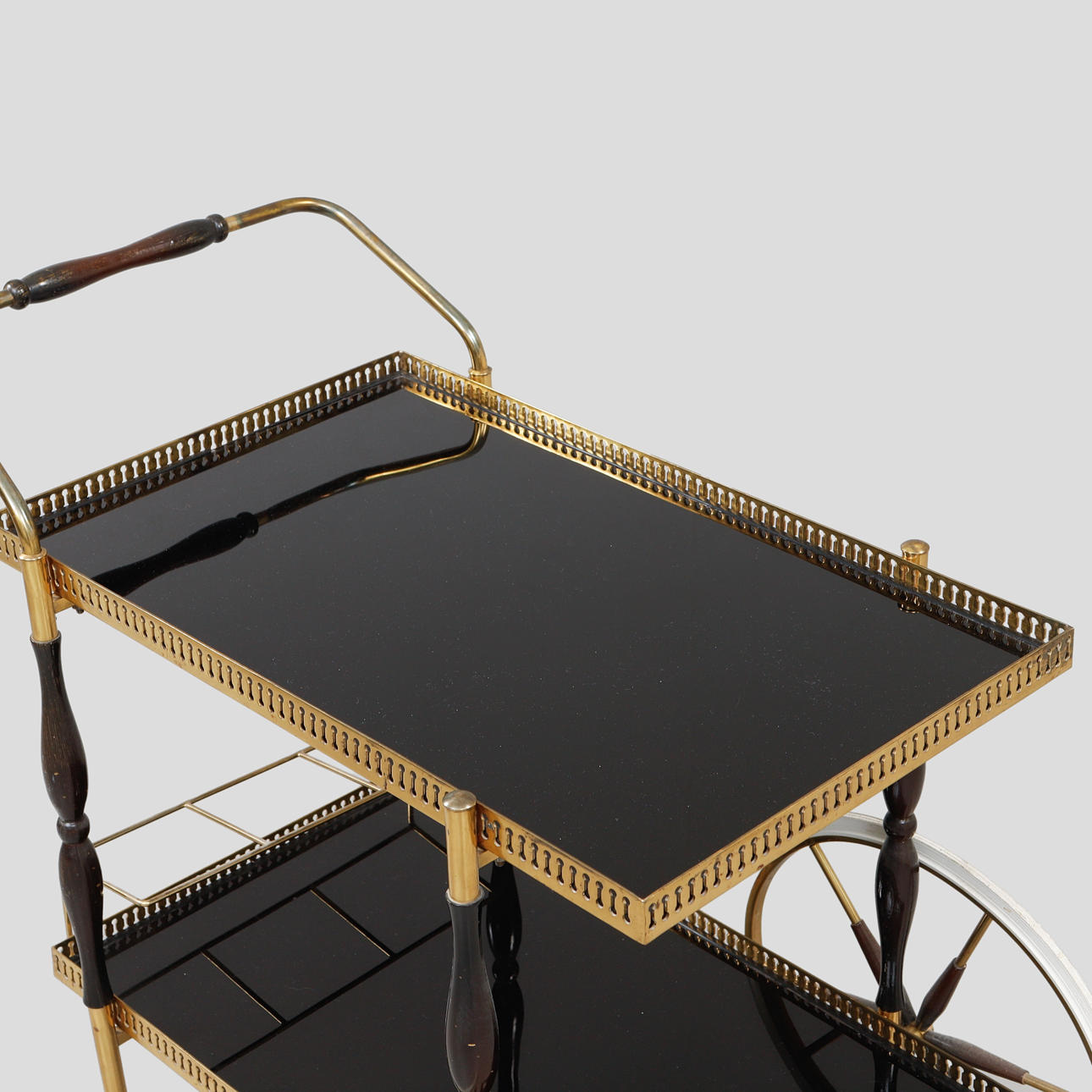 Stomme i mässing med trädetaljer, hyllplan i svarttonat glas. Längd ca 80 cm, bredd ca 43 cm, höjd ca 76 cm.