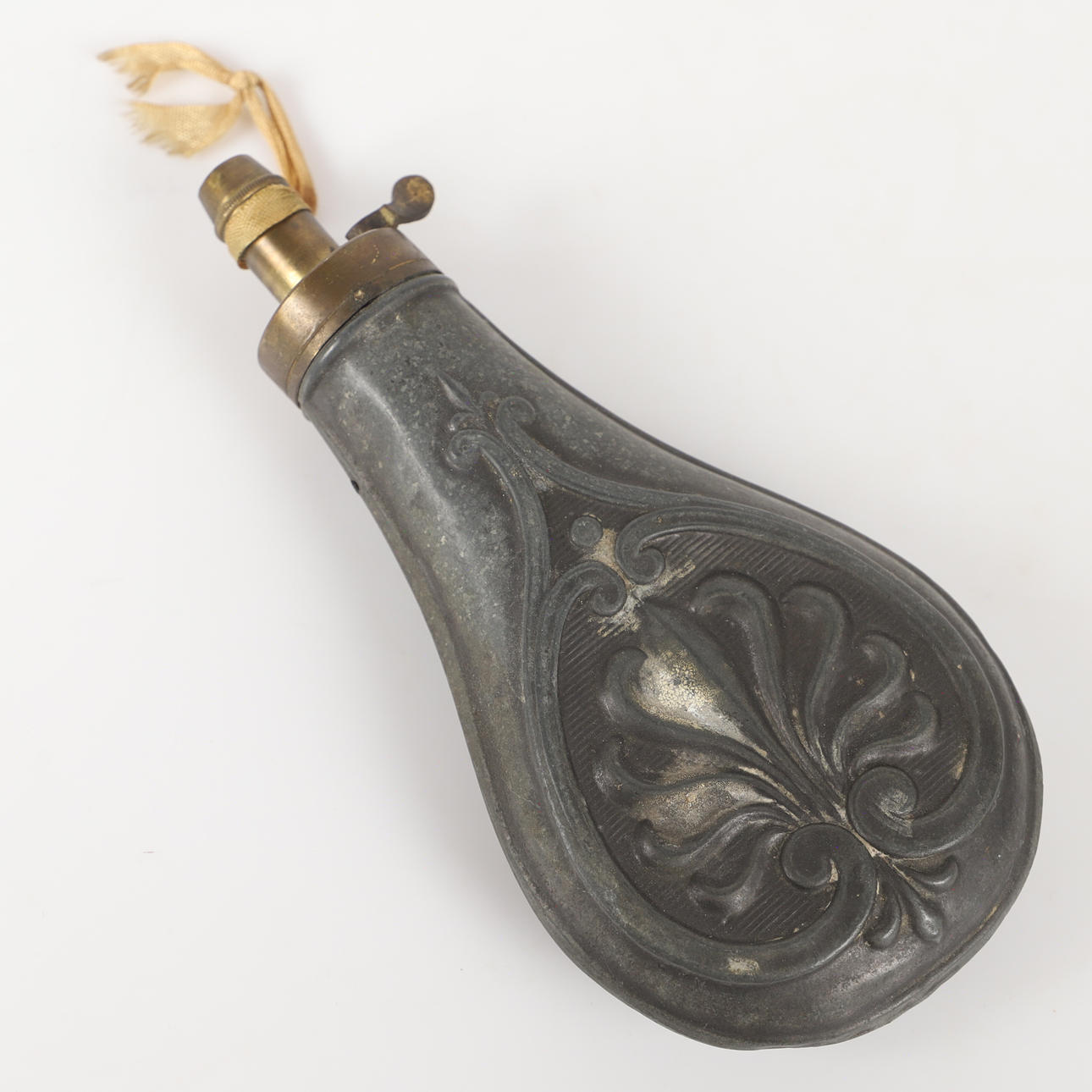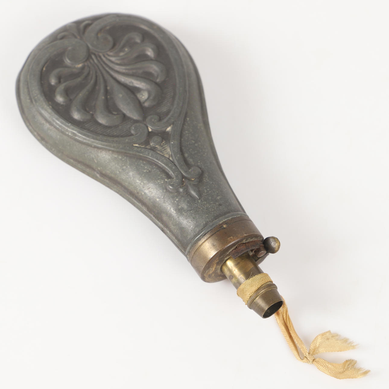 KRUTFLASKA, tenn/mässing, 1800-tal.