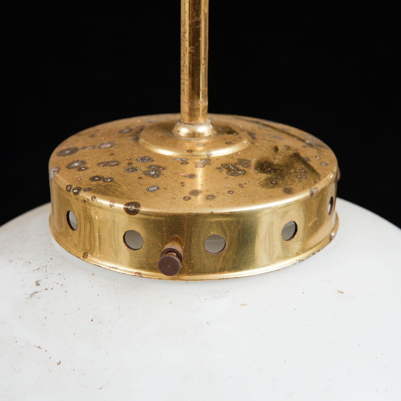 Klotformad kupa i opalglas med mässingsmontering. Diameter ca 30 c,, höjd ca 70 cm.