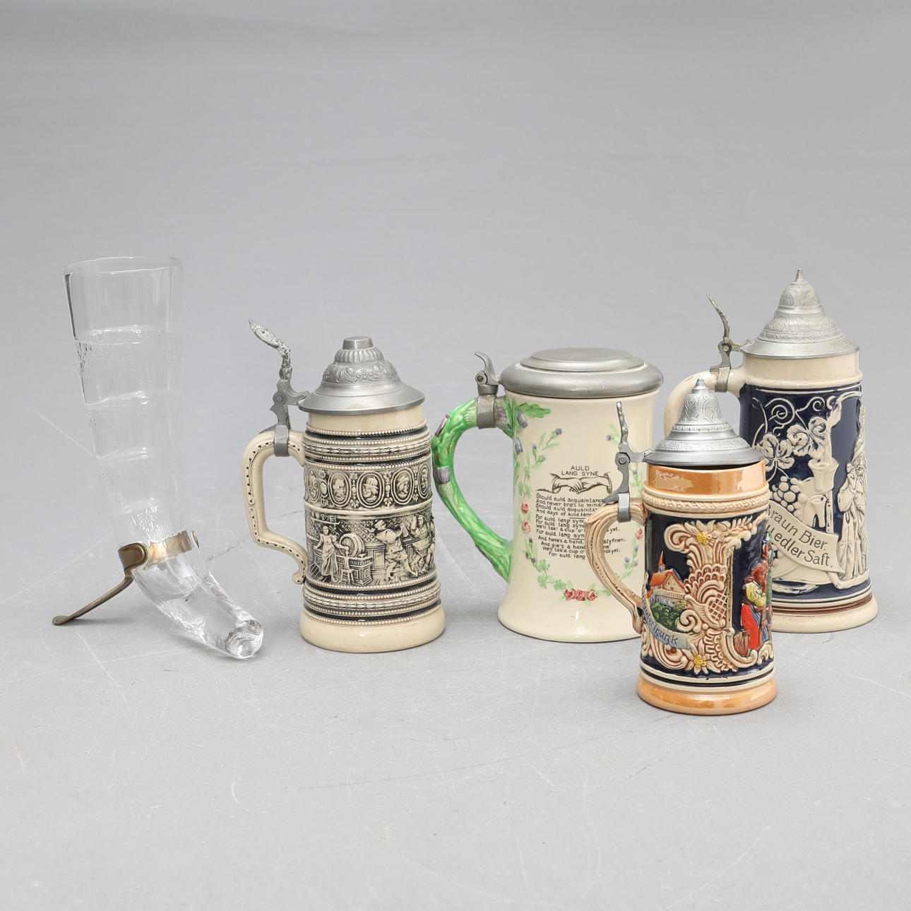 4964276. ÖLSEJDLAR, 4 stycken samt ett glas.
