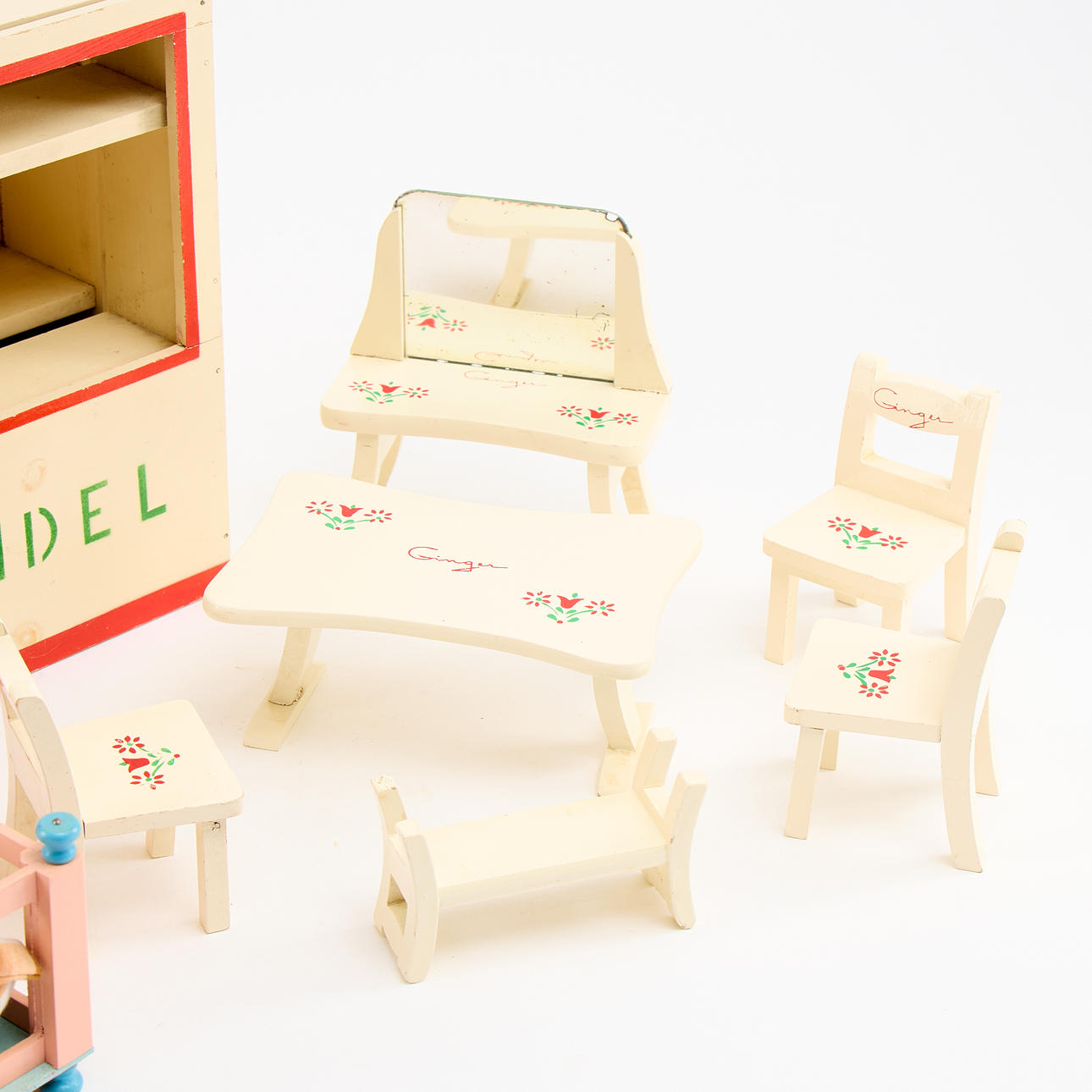 Bord, säng och stolar märkta "Ginger". Diversehandelns L ca 40, B ca 13, H ca 25 cm.