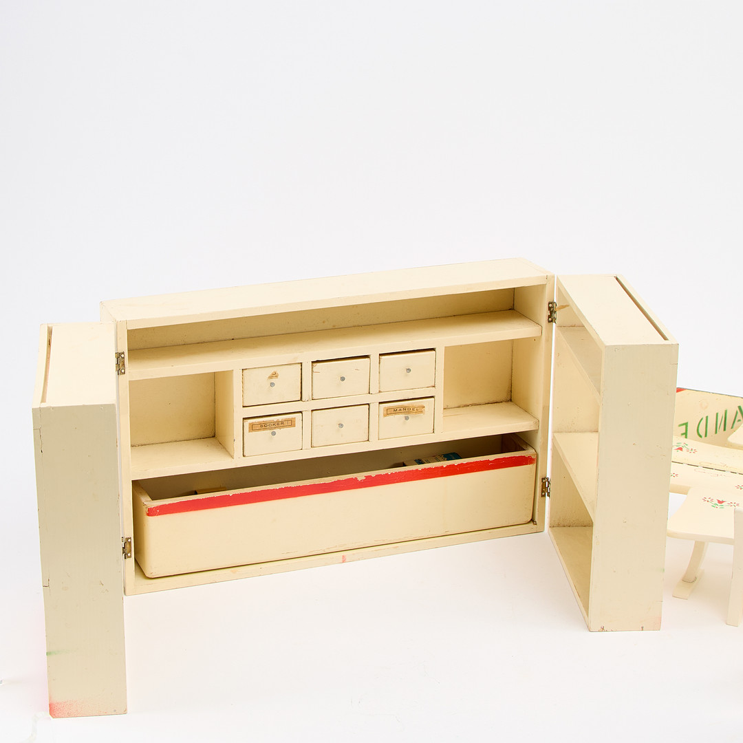 4964364. DOCKSKÅPSMÖBLER, ca 8 delar, 1950-tal.