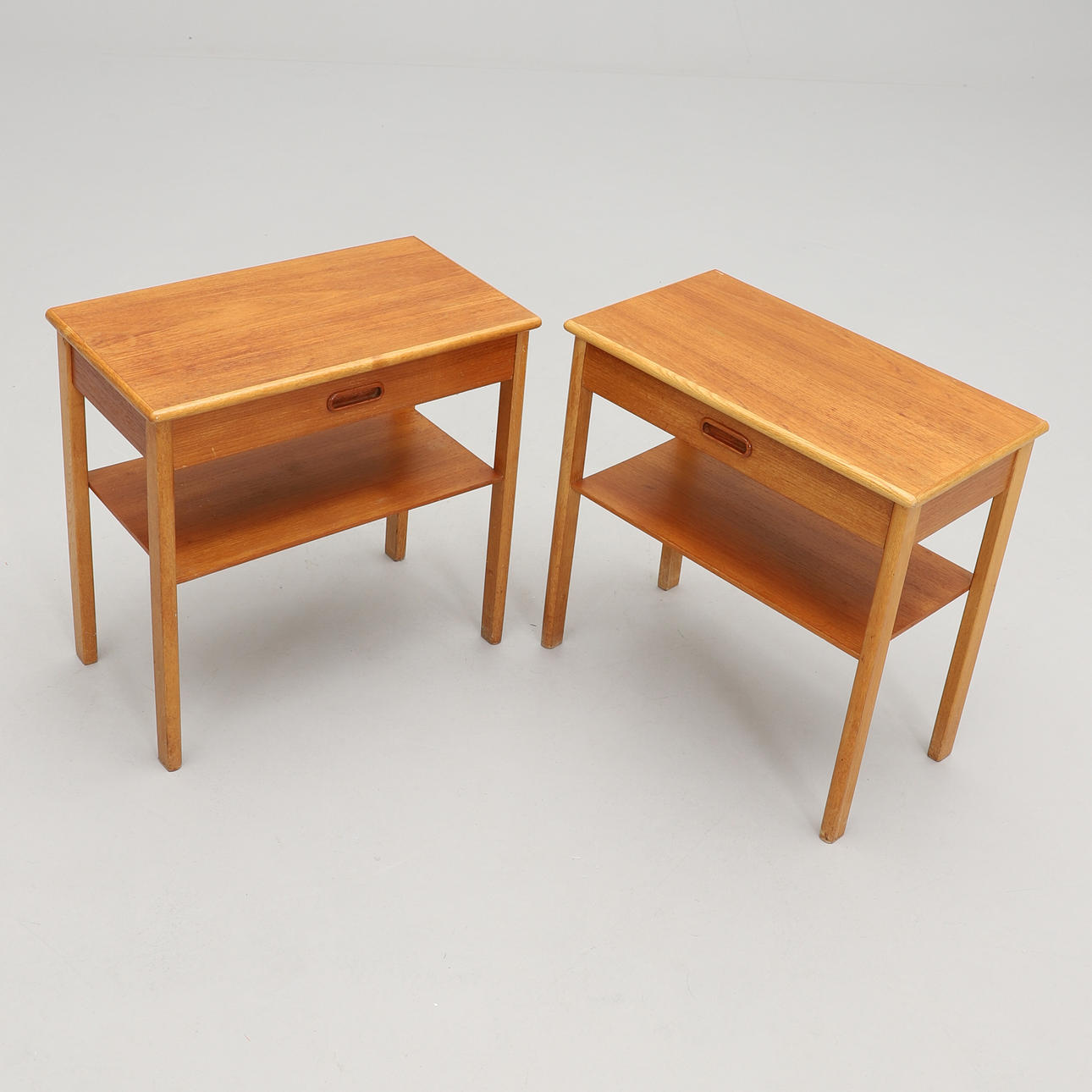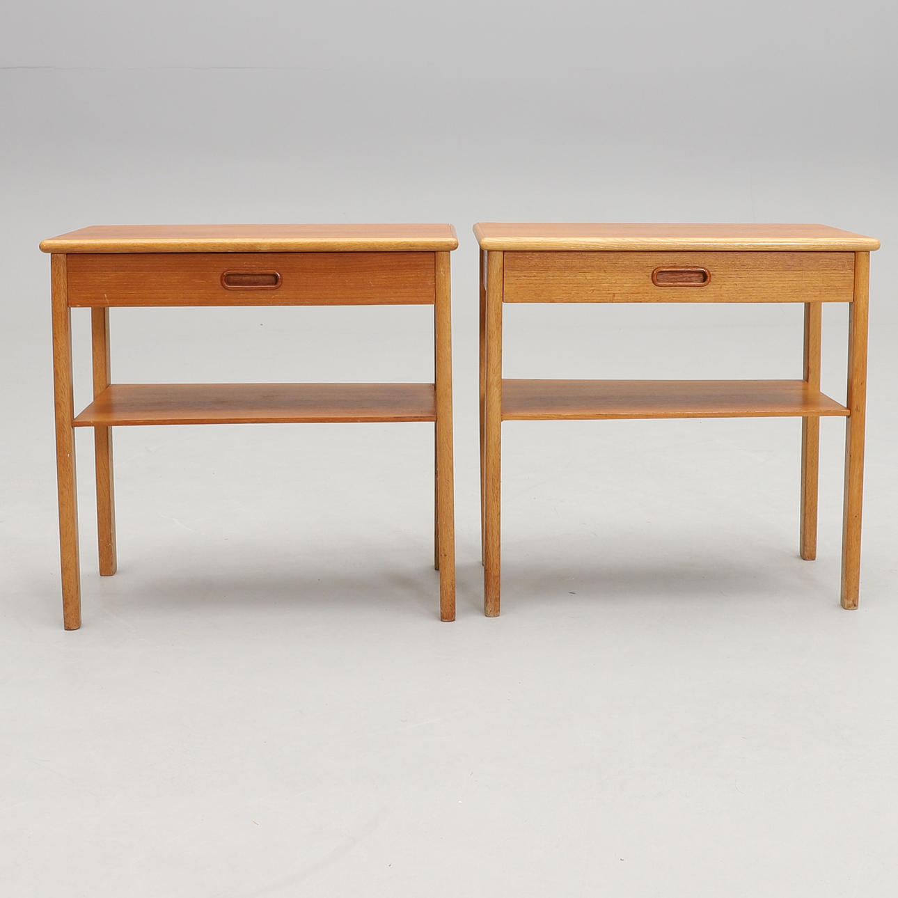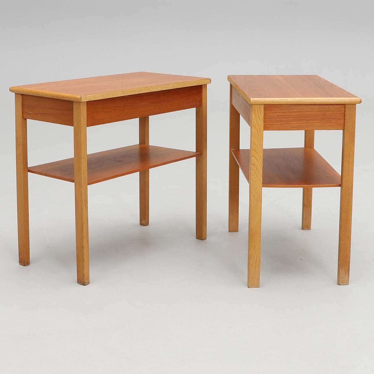 Teak och ek. I fronten låda samt tidskriftshylla. Mått: bredd 54, djup 30, höjd 52 cm.