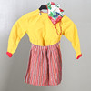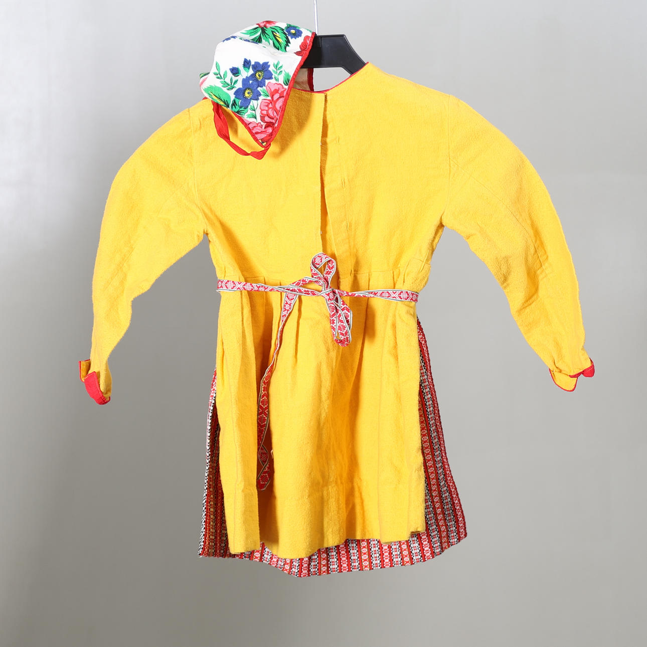 Förkläde, gulkolt, hätta och brosch/spänne.