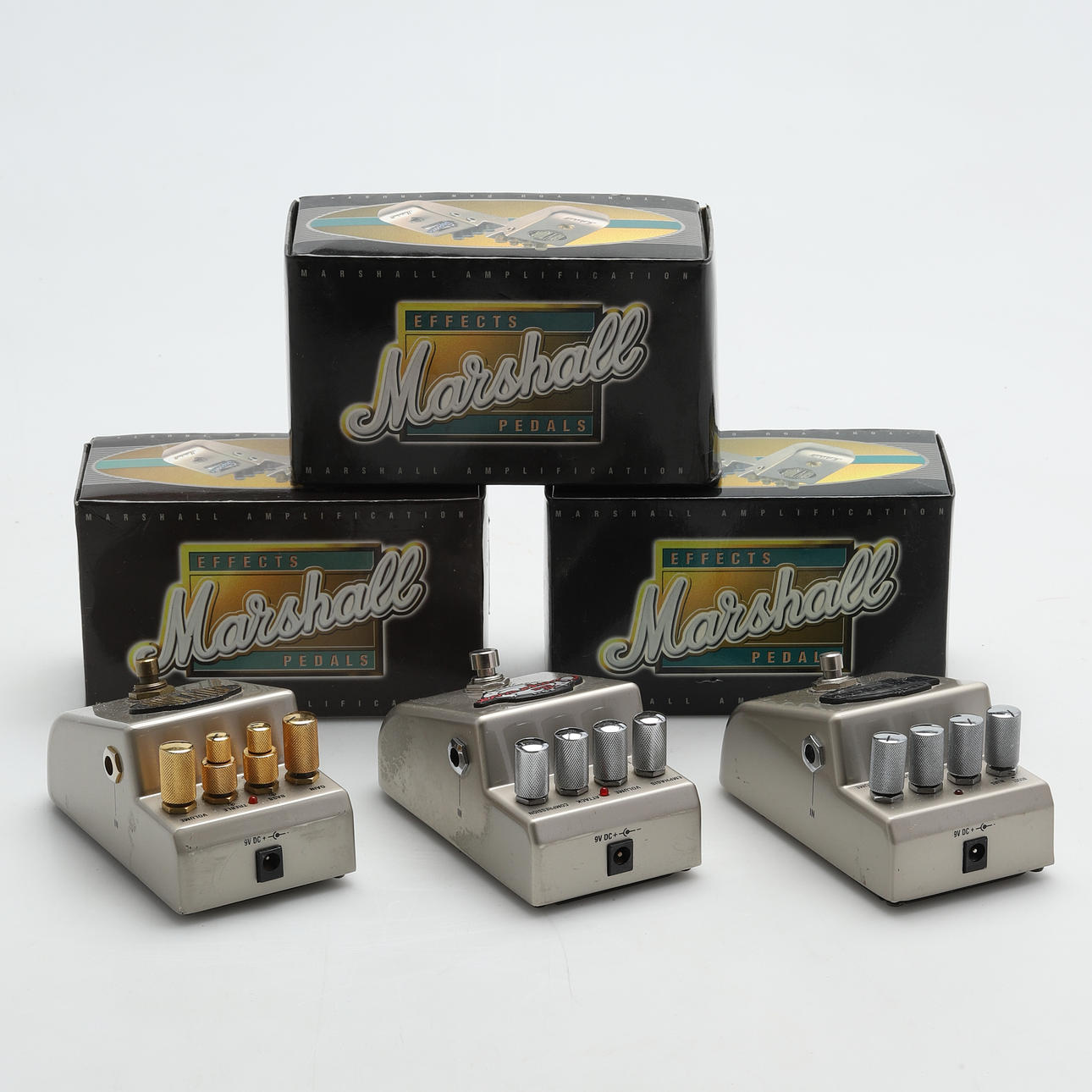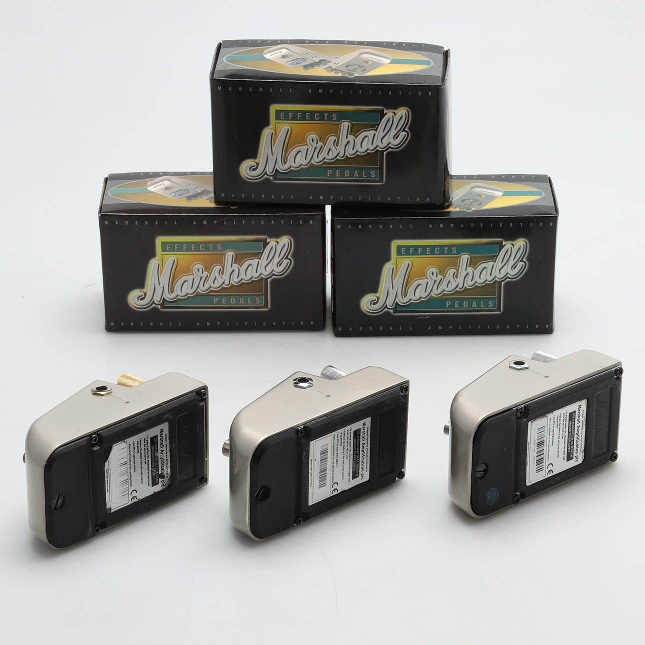 Marshall Guv'nor Plus, The Compressor samt Bluesbreaker II. I originalkartonger. Kartong ca 14 x 9 cm/st.
