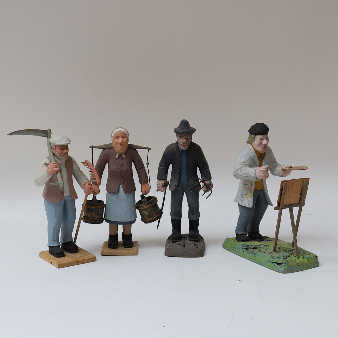 4964813. TRÄFIGURER, 4 stycken, Signerade E.O.