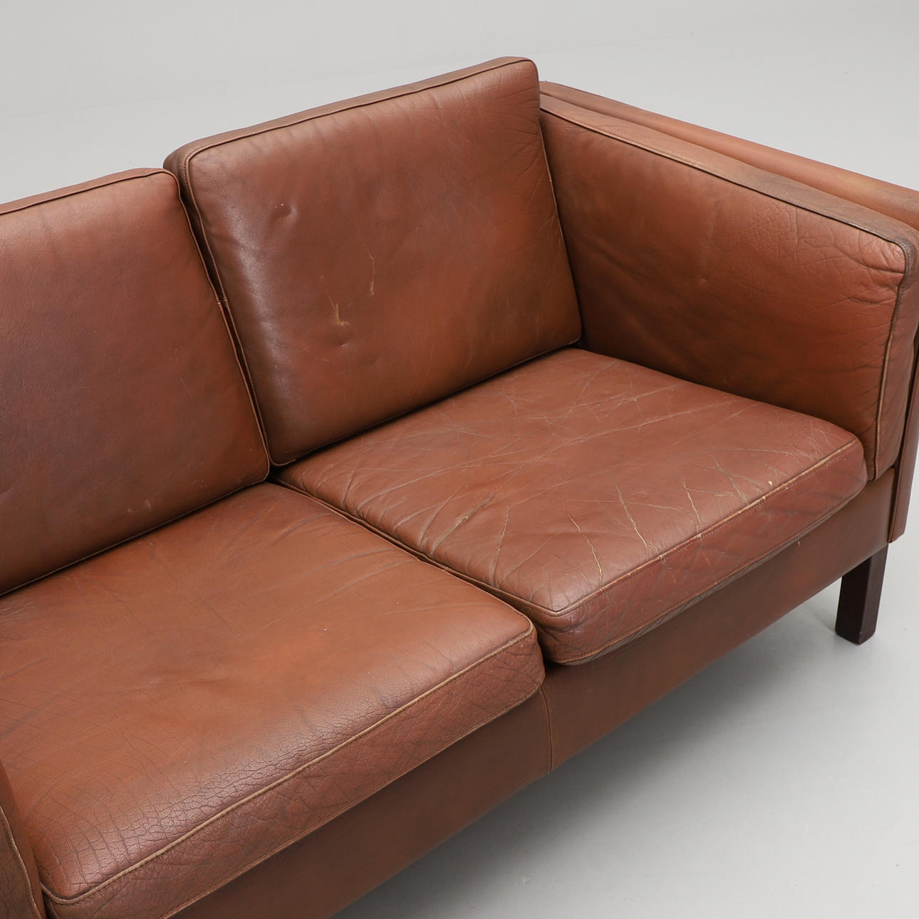 Bruksslitage. Märken och repor. Klädsel ställvis med torrsprickor.