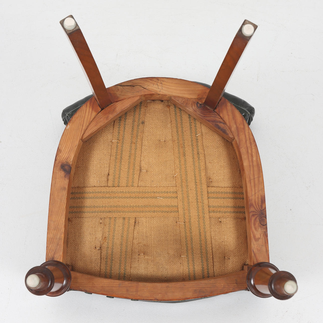 Galonklädsel, sitthöjd ca 45, rygghöjd ca 80 cm.