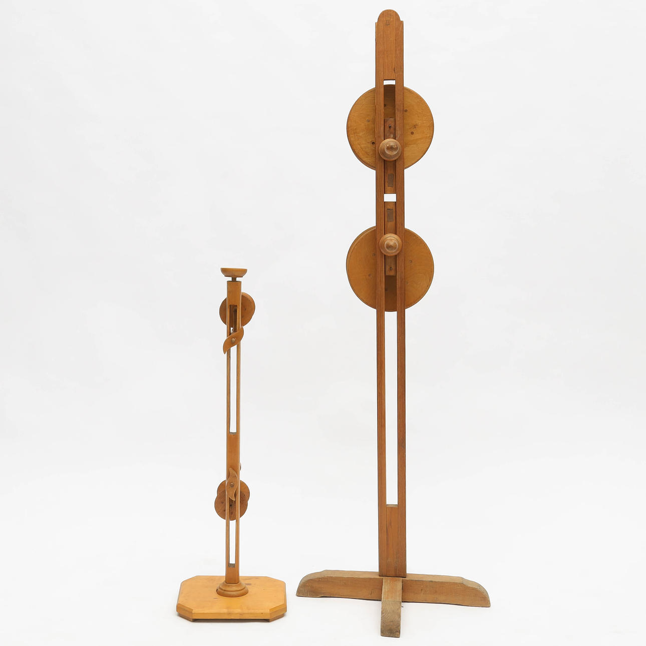 Höjd 87 cm, 28 x 27 cm. Höjd 148 cm, 48 x 48 cm.