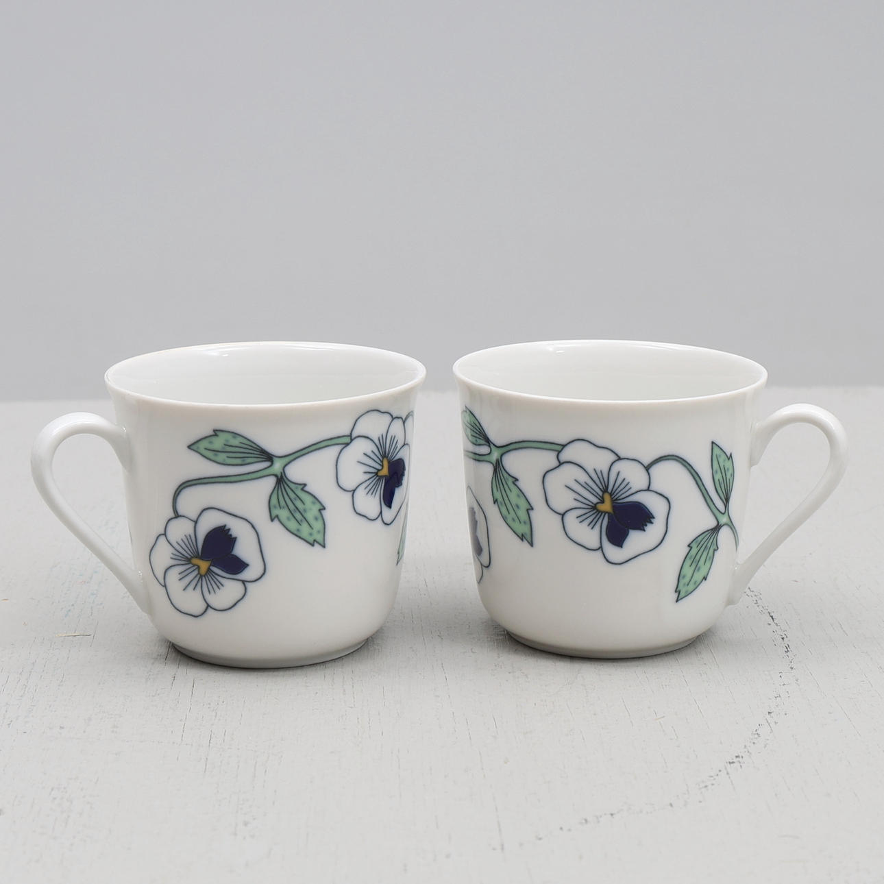 12 koppar med 13 fat. Kopp höjd 6,5 cm, fat ca 13 cm diameter.