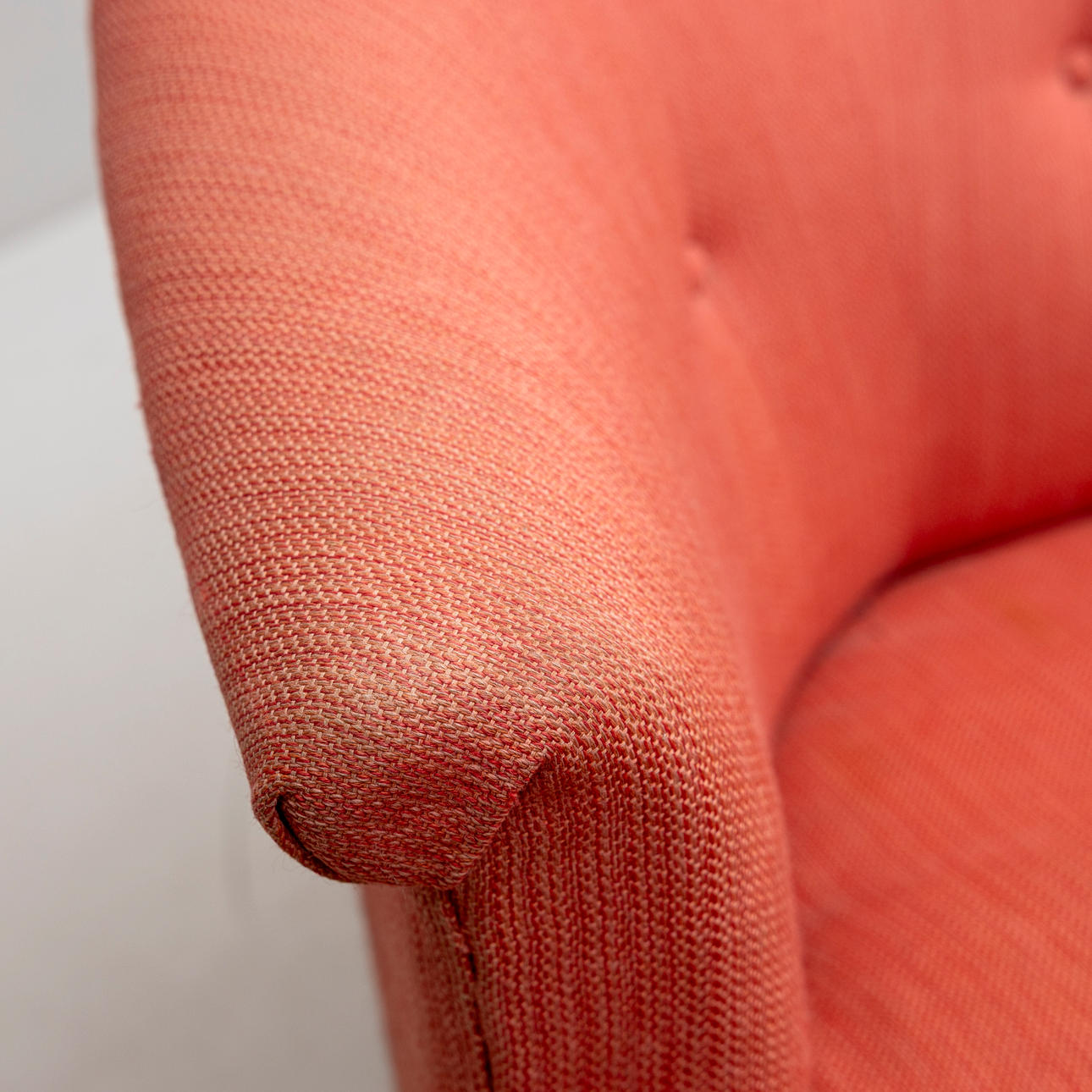 Slitage, ojämnt solblekt, fläckar, saknar tre knappar i ryggen.