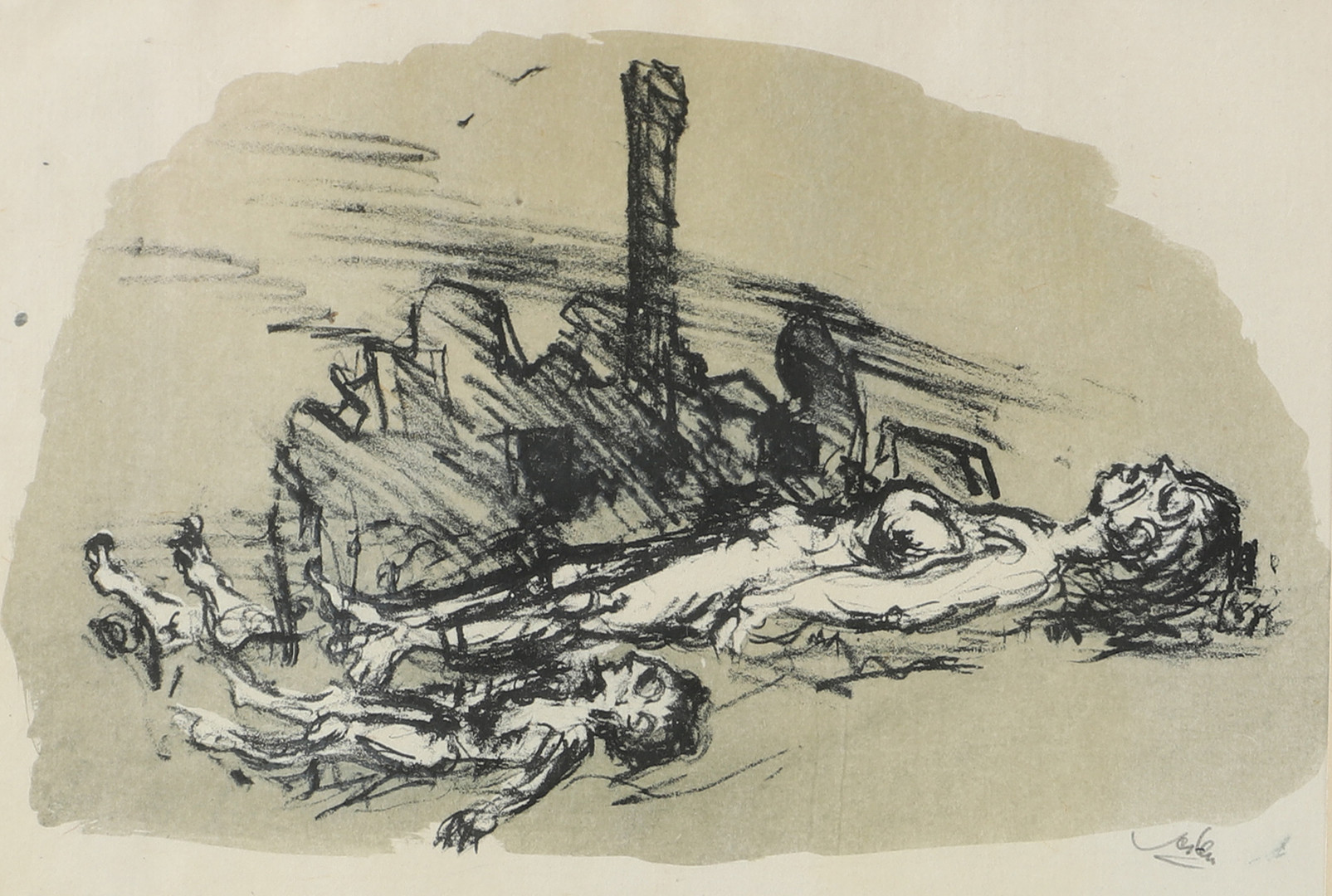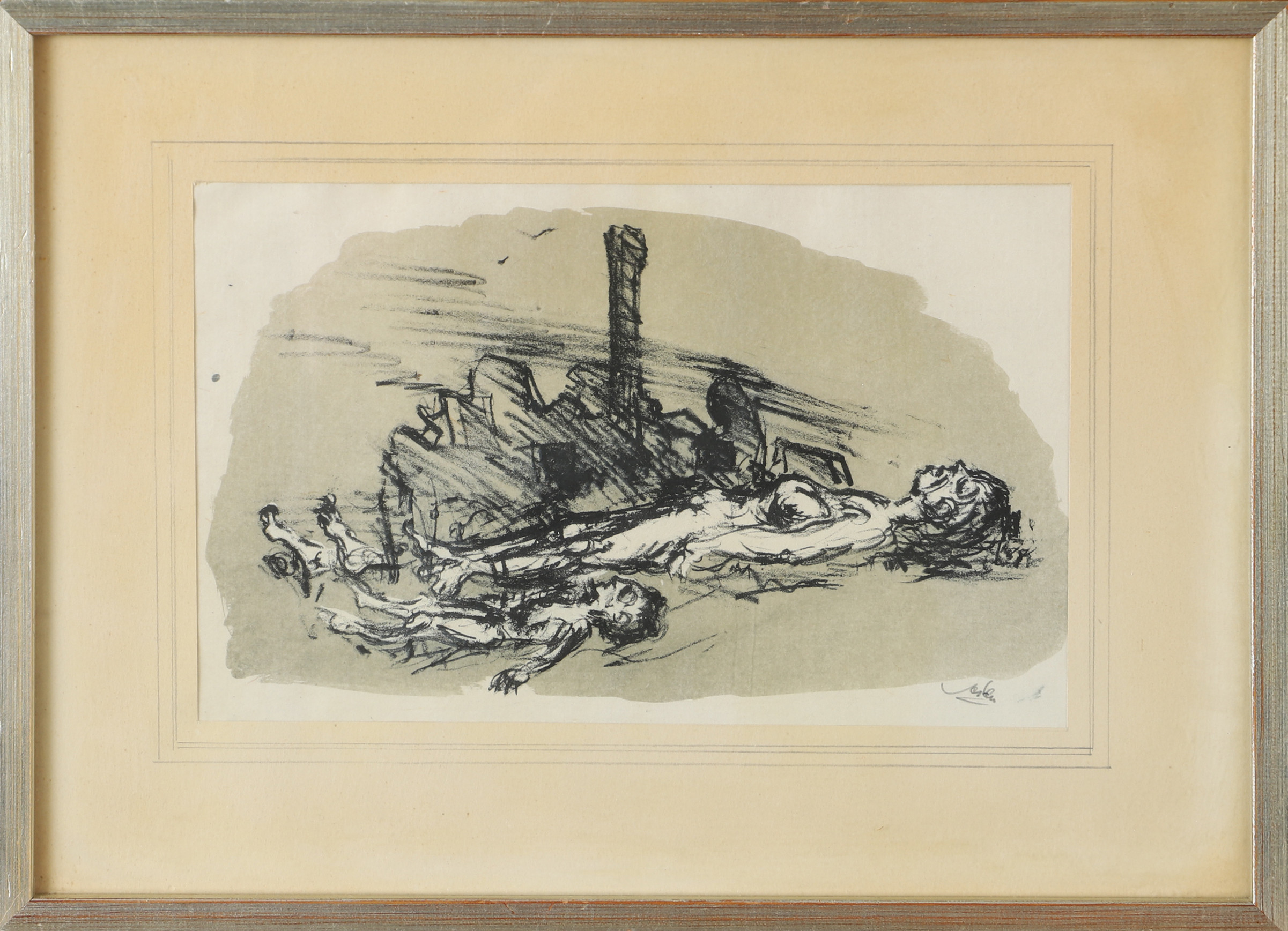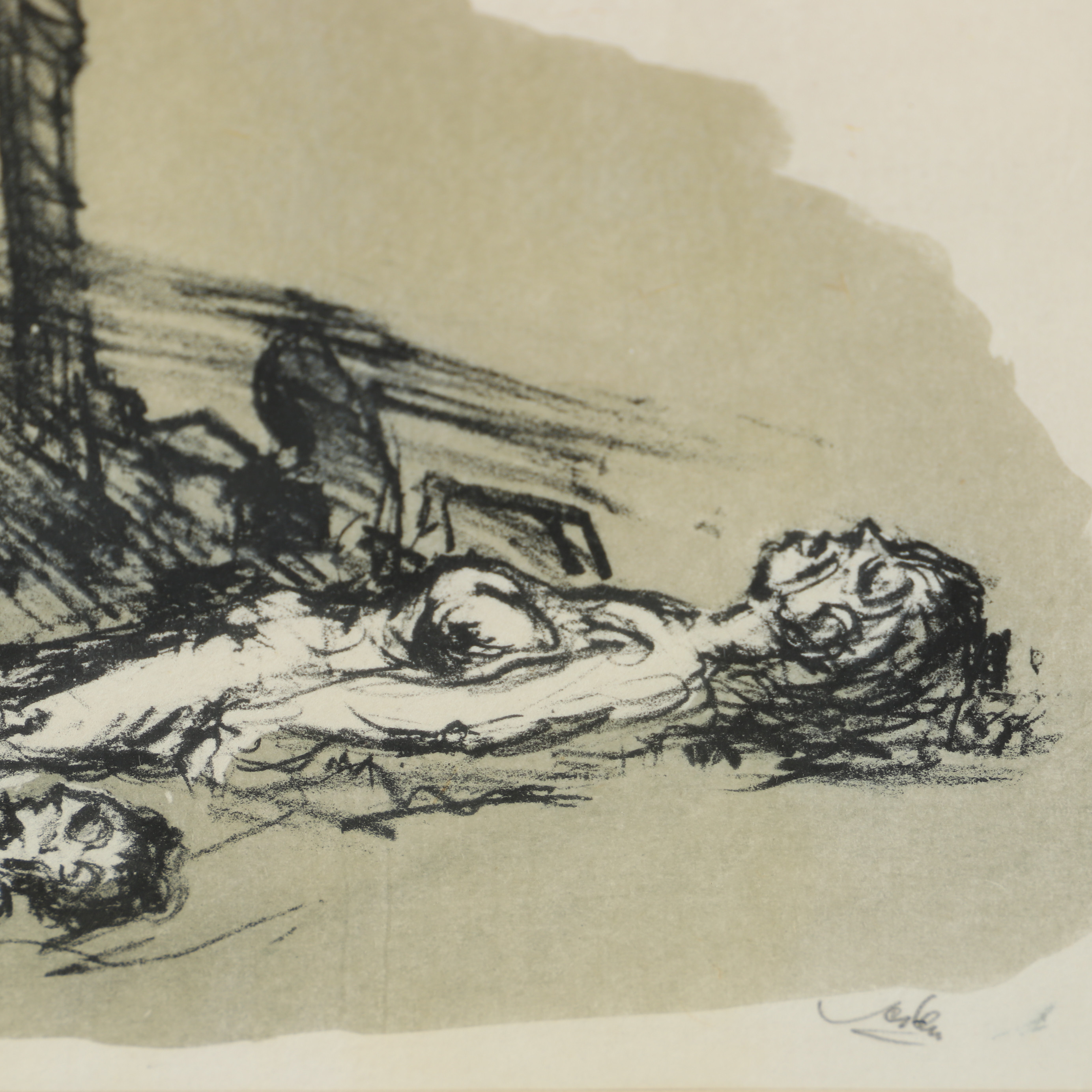 4965401. BÖRJE VESLE’N. EFTER. Tryck, ”Bland ruiner”, signerad.