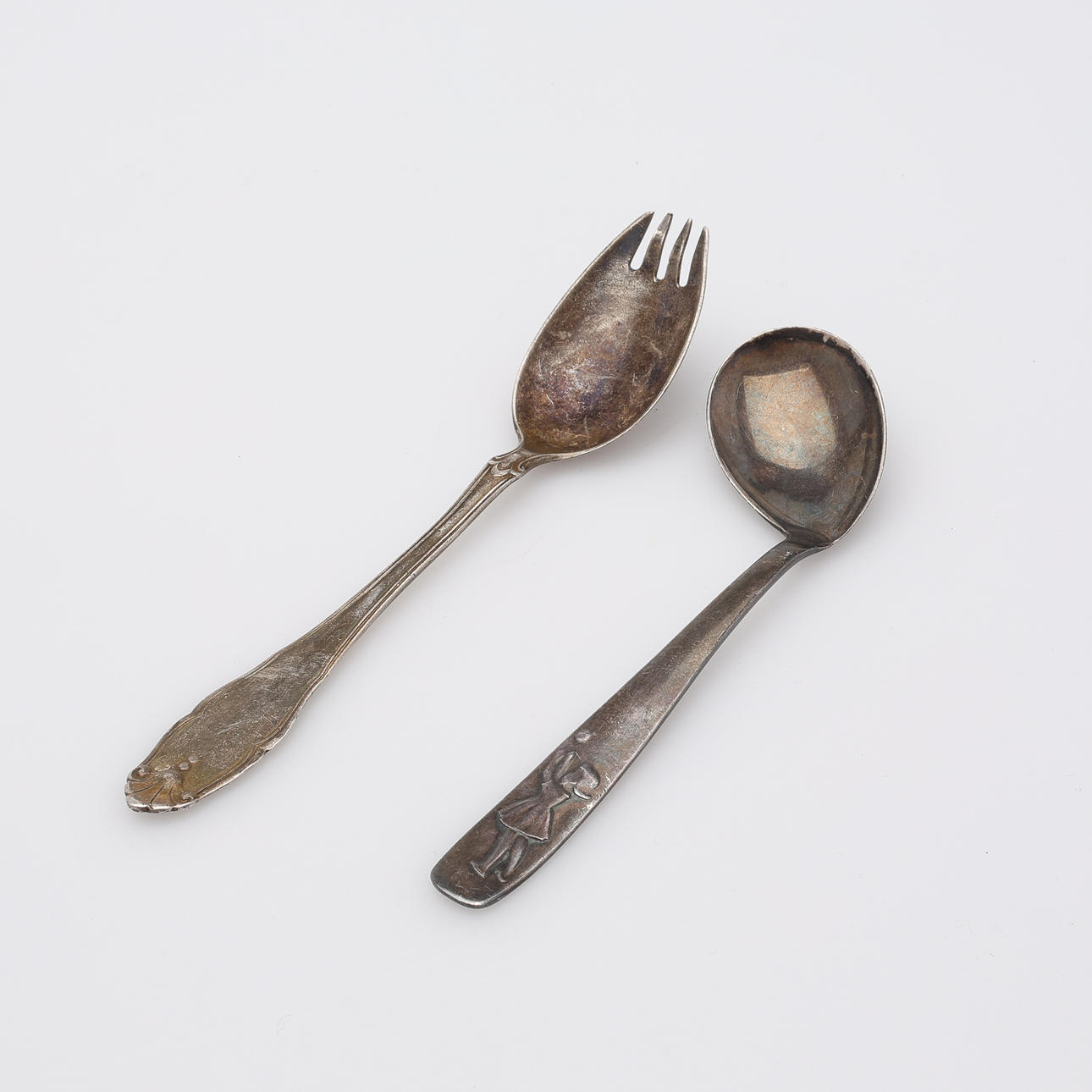 Skedar samt gafflar, mestadels Sverige och Danmark. Olika modeller samt tillverkare. Längd ca 10-22 cm.