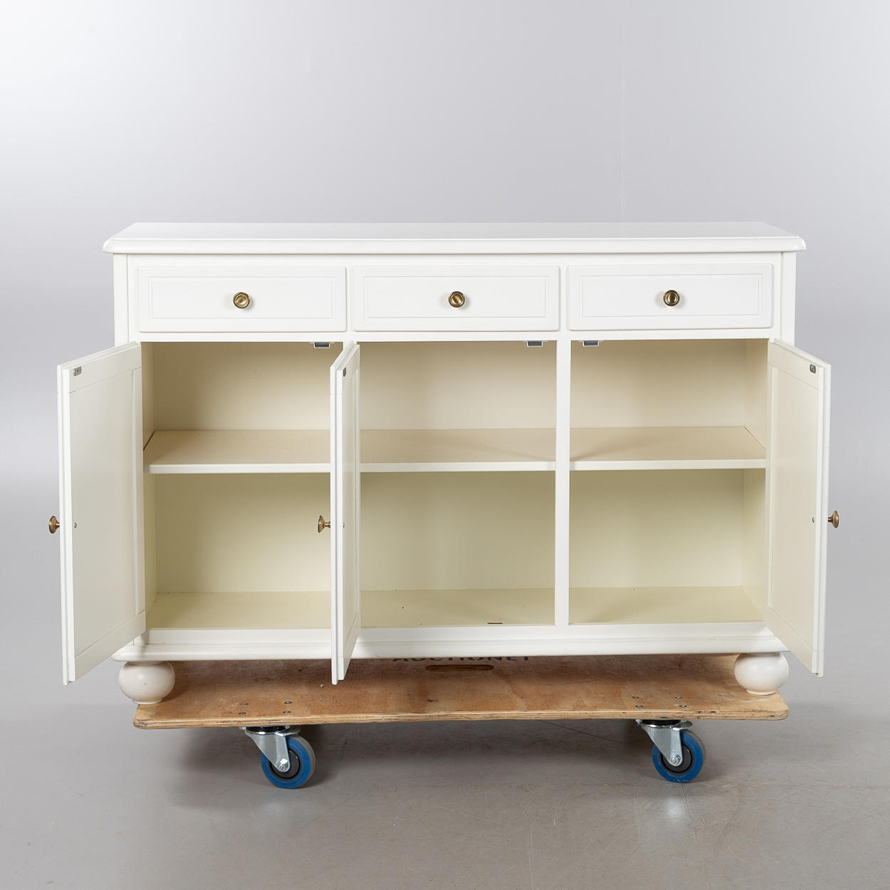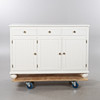 Vitmålad, 3 lådor, brännmärkt, höjd ca 86, 126 x 45 cm.
