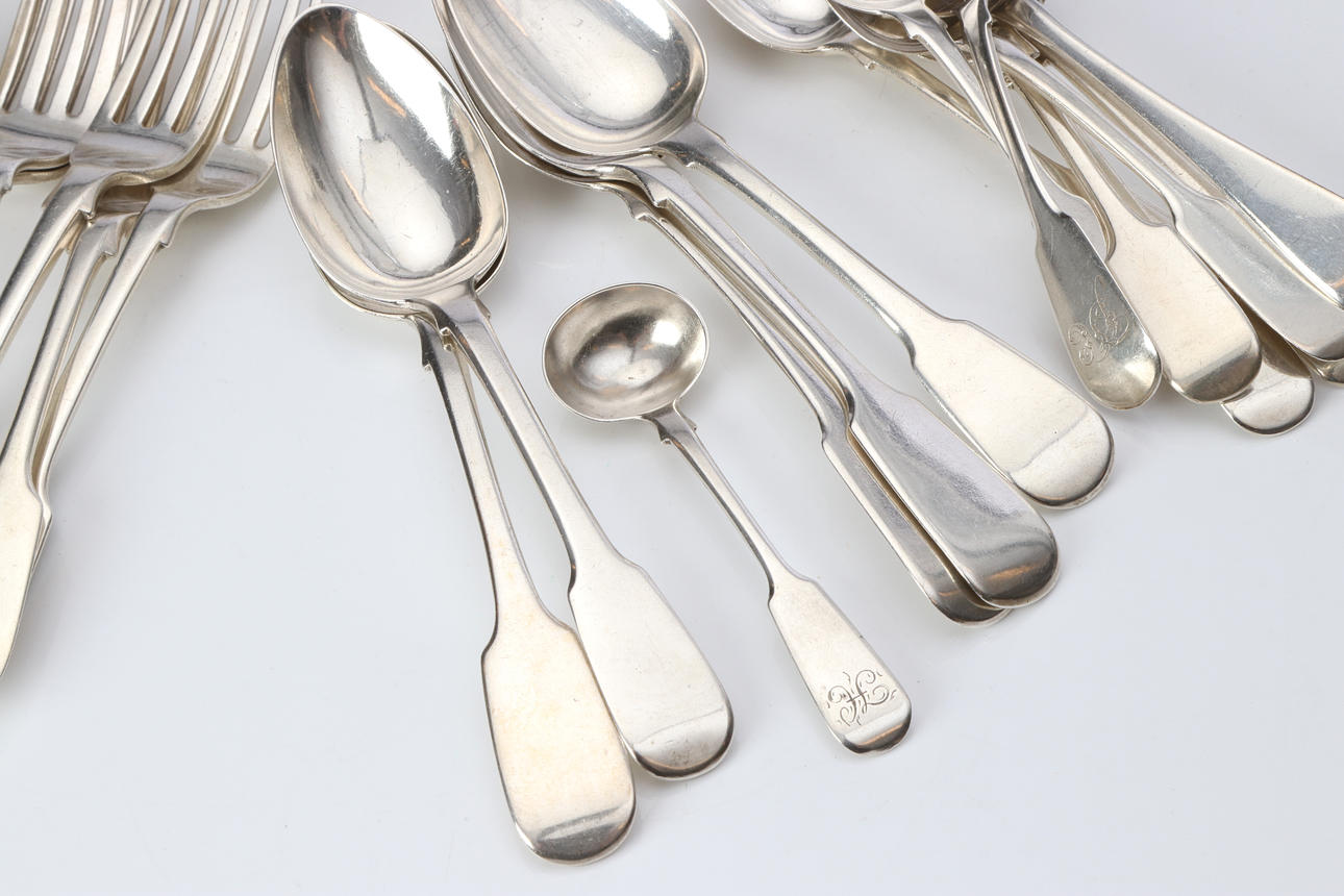 PARTI BESTICK. Silver. England. Vikt ca 1230 gram.