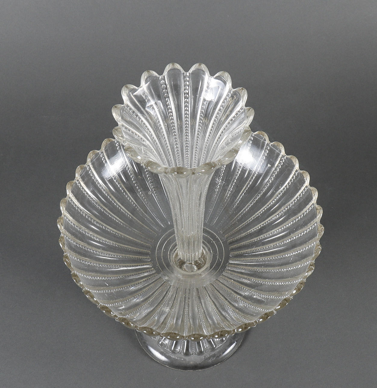 4965532. STRUTSKÅL pressglas, 2 delar.