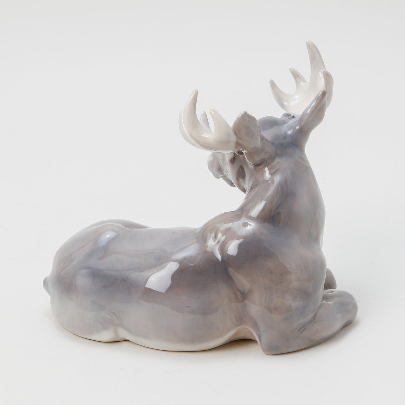 Föreställande liggande älg. Längd 26, höjd 22 cm.