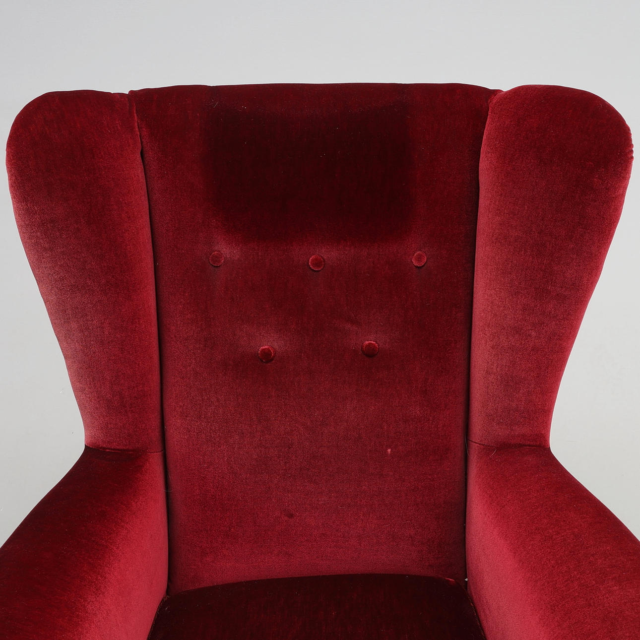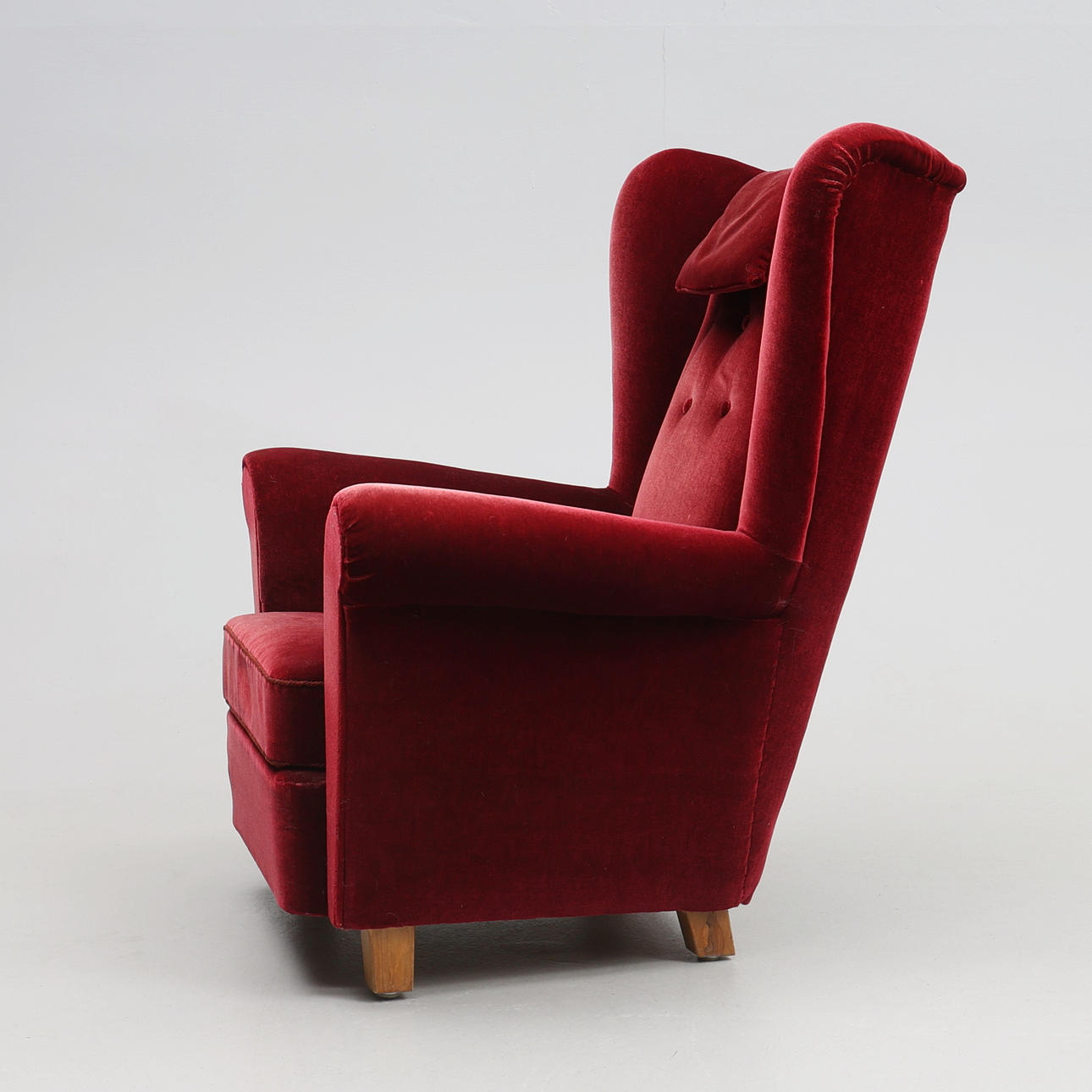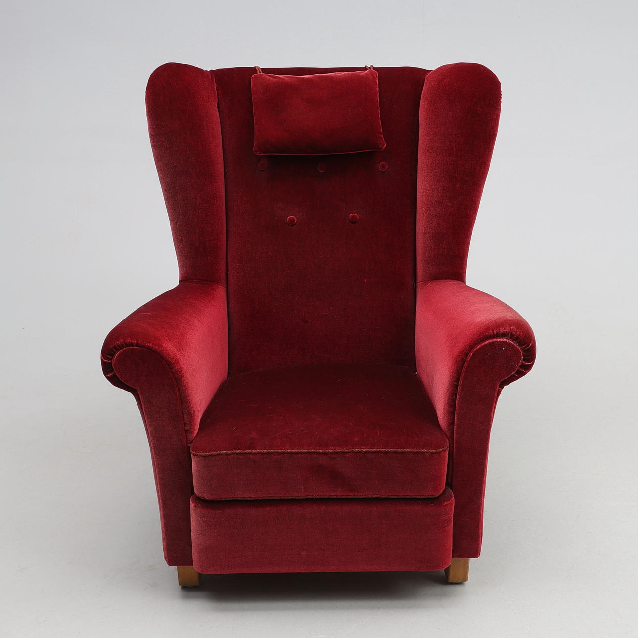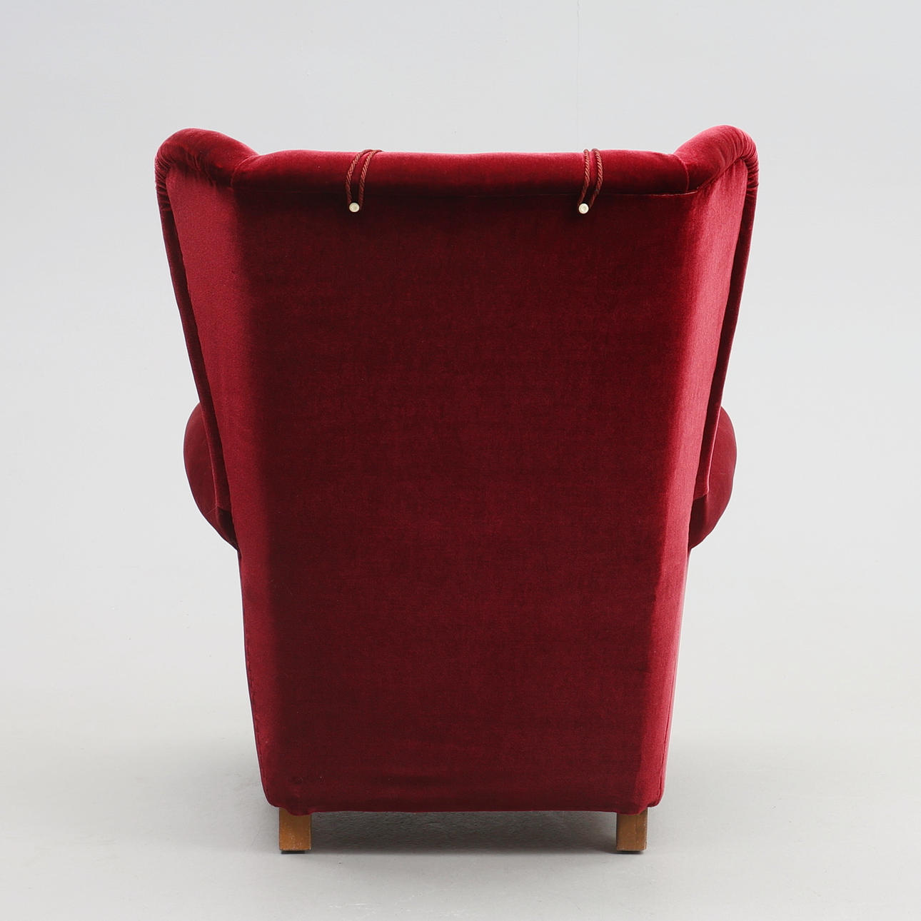 4965668. ÖRONLAPPSFÅTÖLJ, Plysch, 1900-talets mitt.