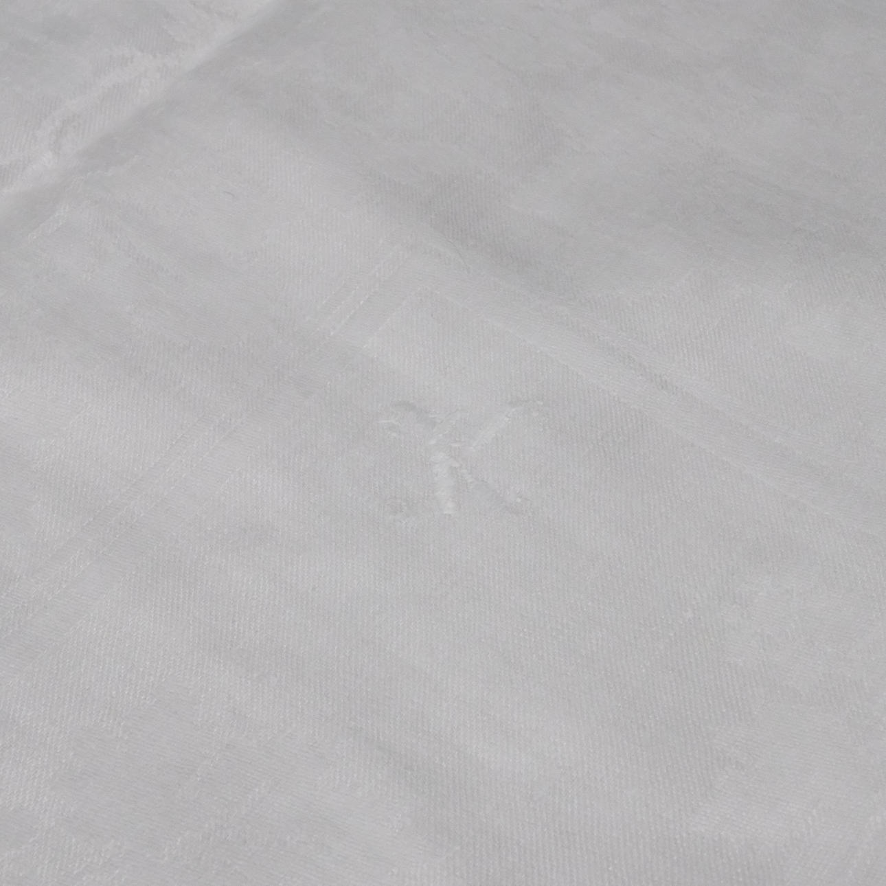 Bruksslitage. Monogrambrodyr. Fläckar kan förekomma. En duk med litet hål i kanten.