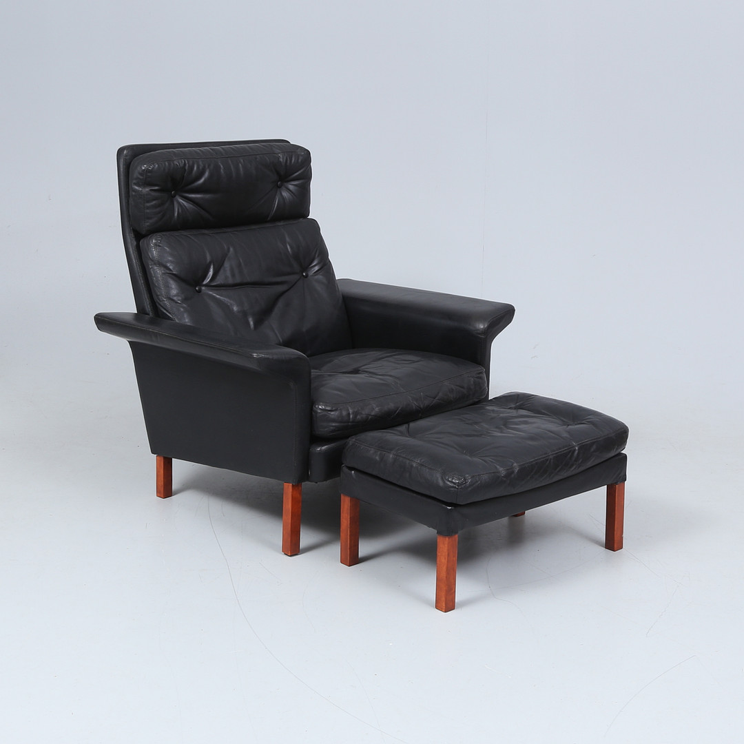 4966137. HANS OLSEN. fåtölj med pall, Danmark.