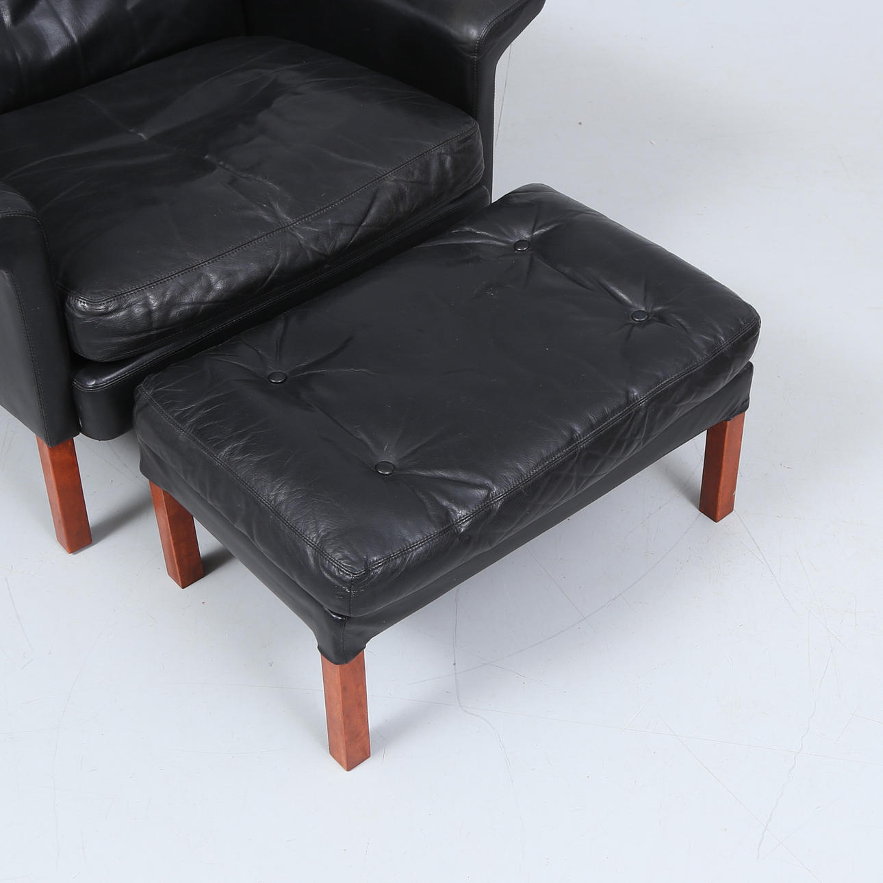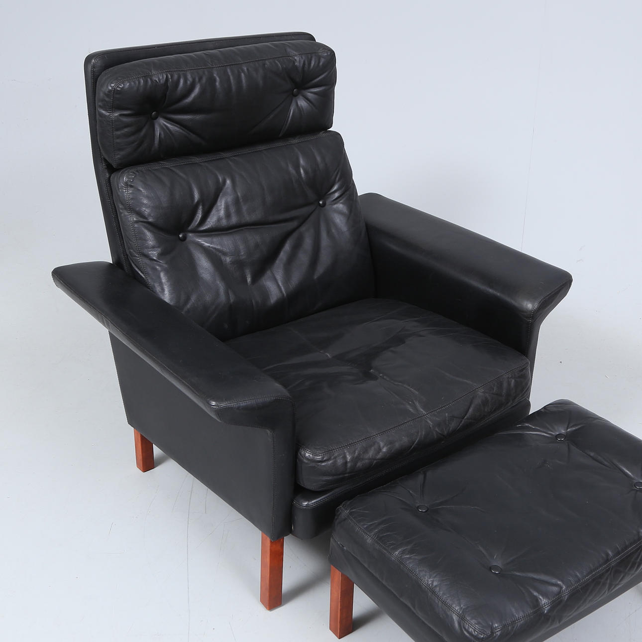 HANS OLSEN. fåtölj med pall, Danmark.