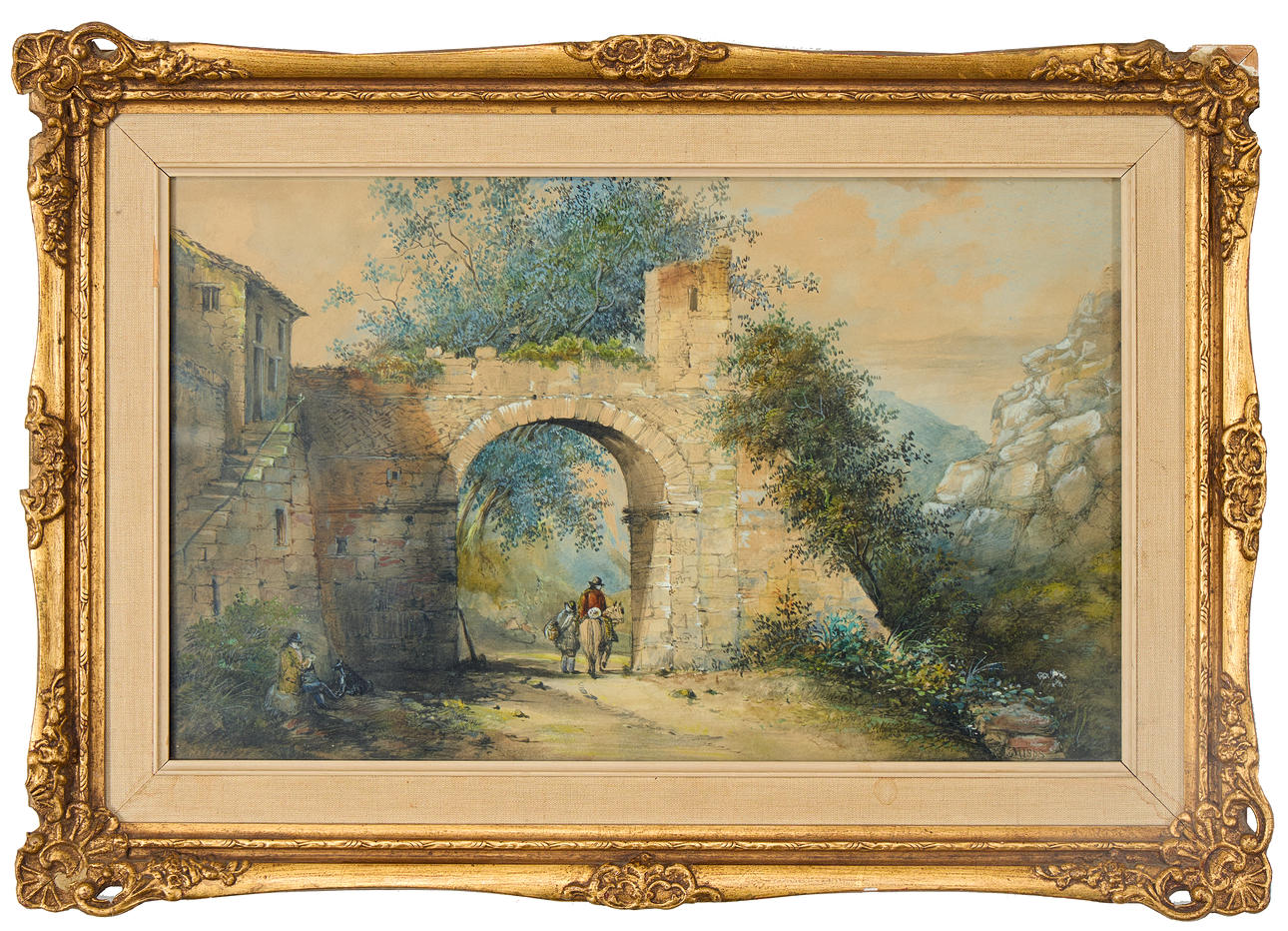 Monogramsignerad MT och daterad 1868. Akvarell och krita på papper. Dagermått 27,5x45,5 cm.
