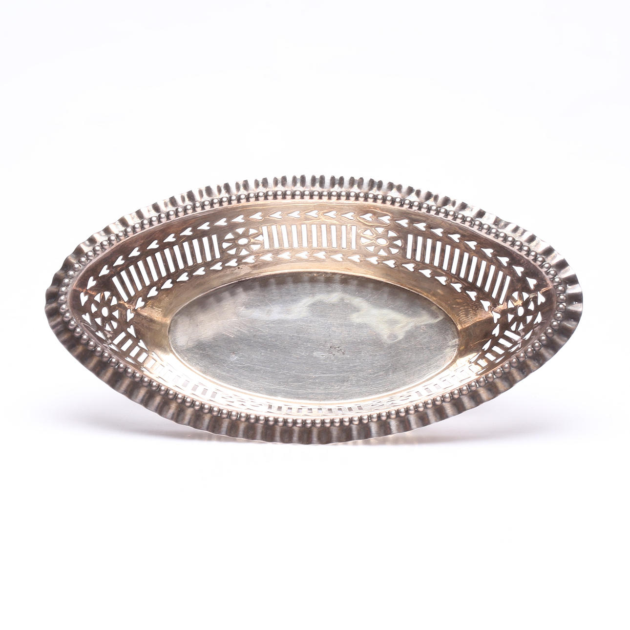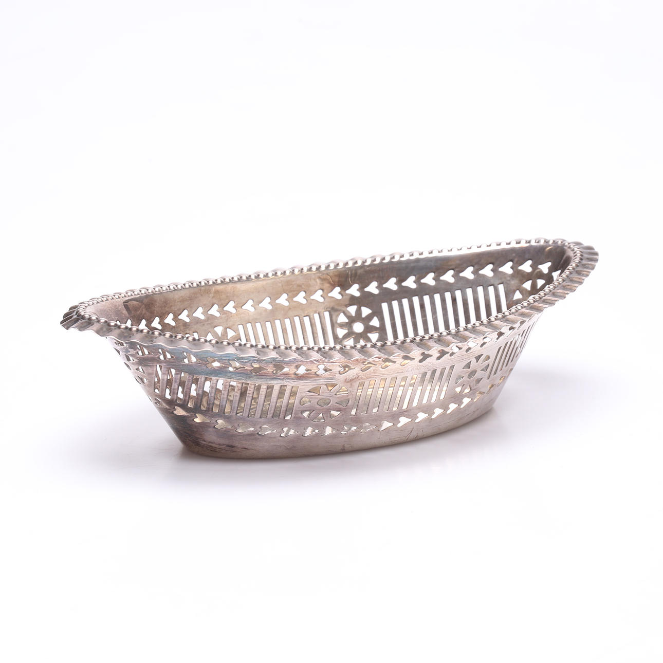 Skål, genombruten dekor. Längd ca 19,5 cm. Höjd ca 5 cm.