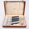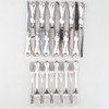 10 st gafflar längd 15 cm, vikt 220 gram 12 st knivar längd 17 cm, vikt 386 gram inkl. rostfria blad Etui 4,5x19x25 cm.