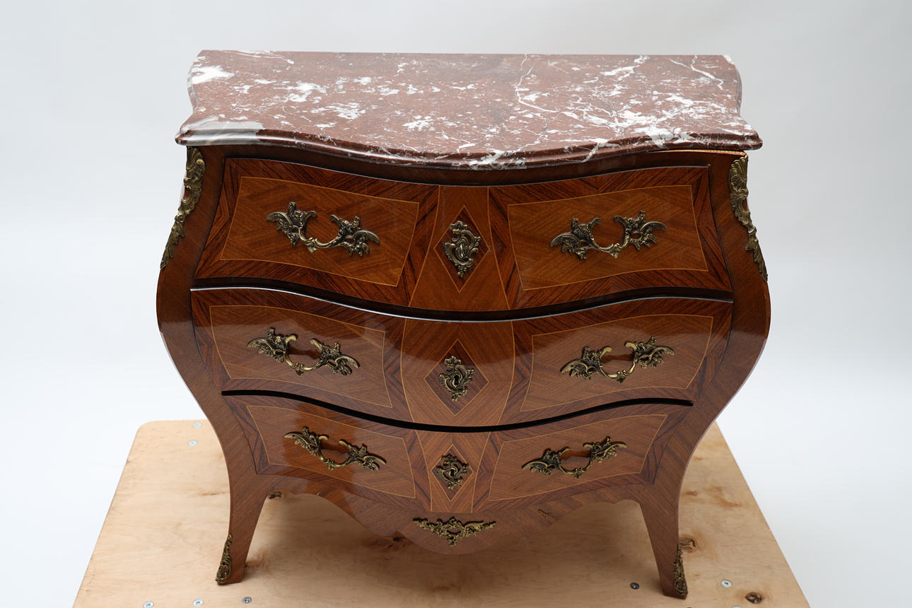 Bruks- och åldersrelaterat slitage. Mindre fanerskador, märken.