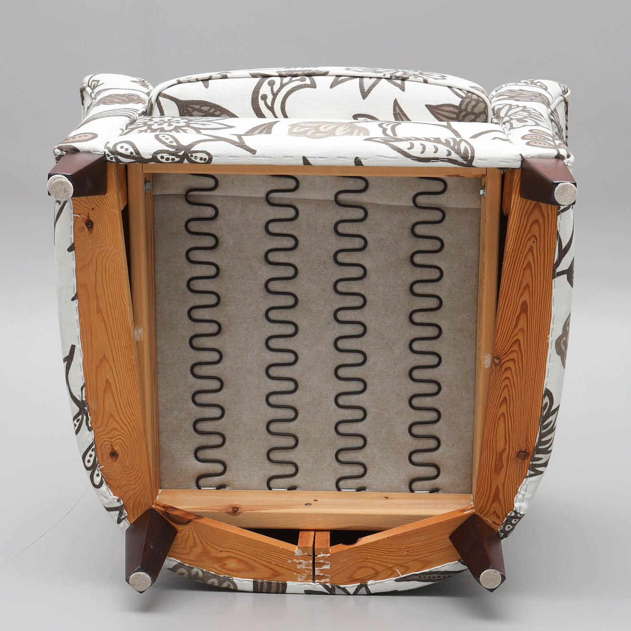 Djup ca 80, höjd 82, bredd 80, sitthöjd 45 cm. Brickmärkta.