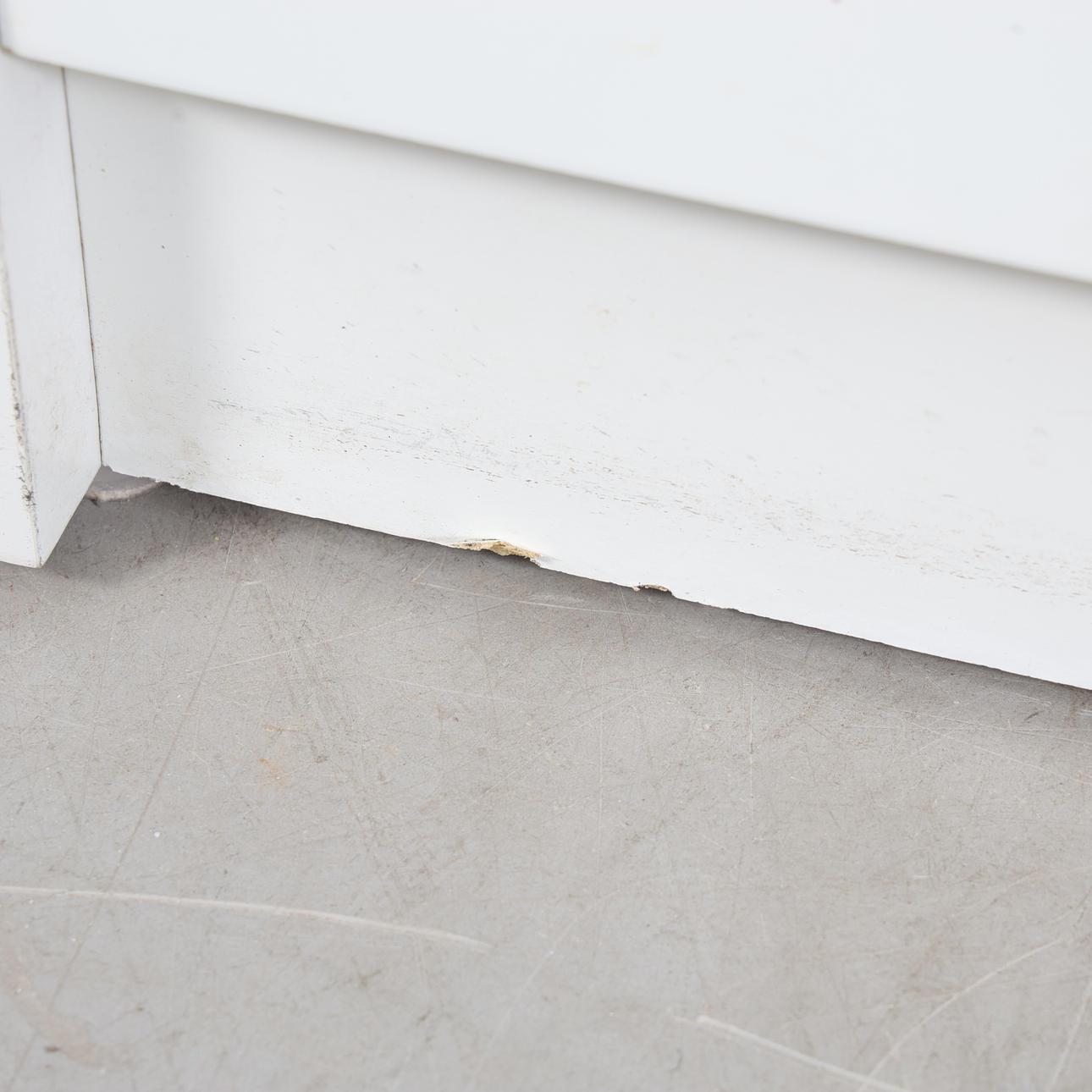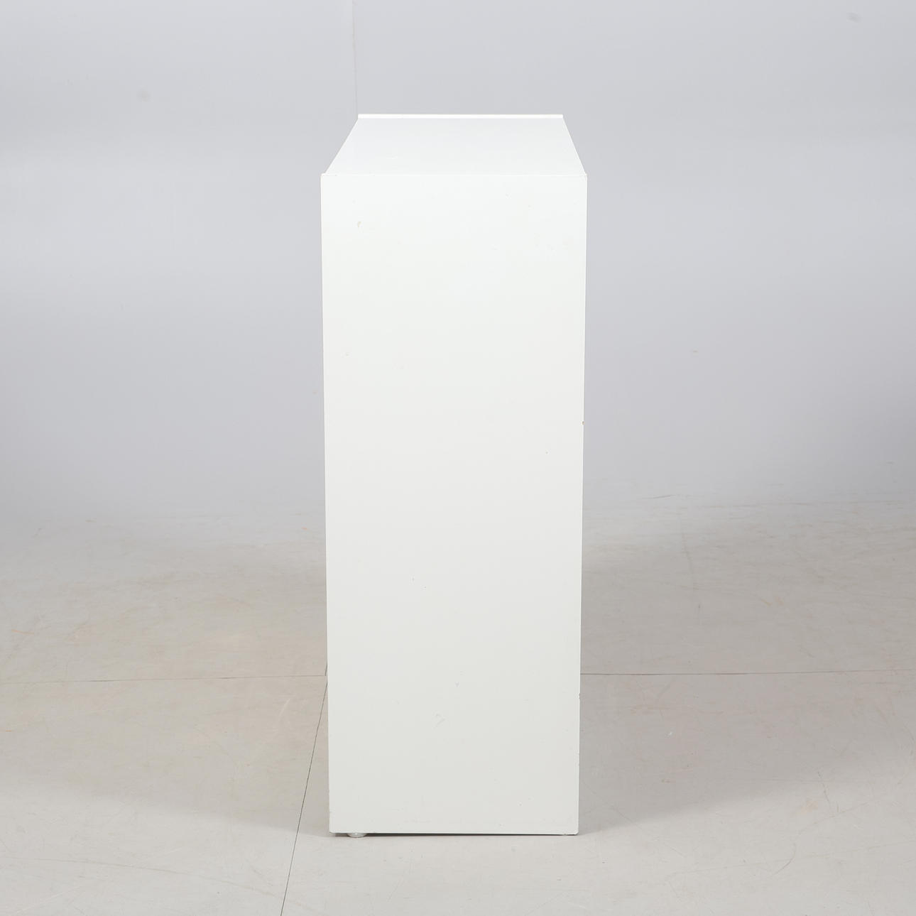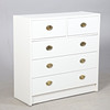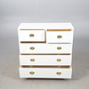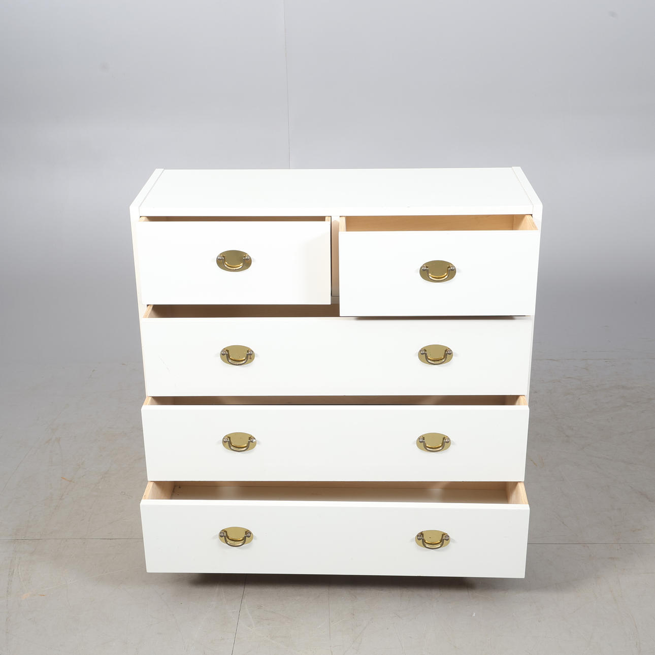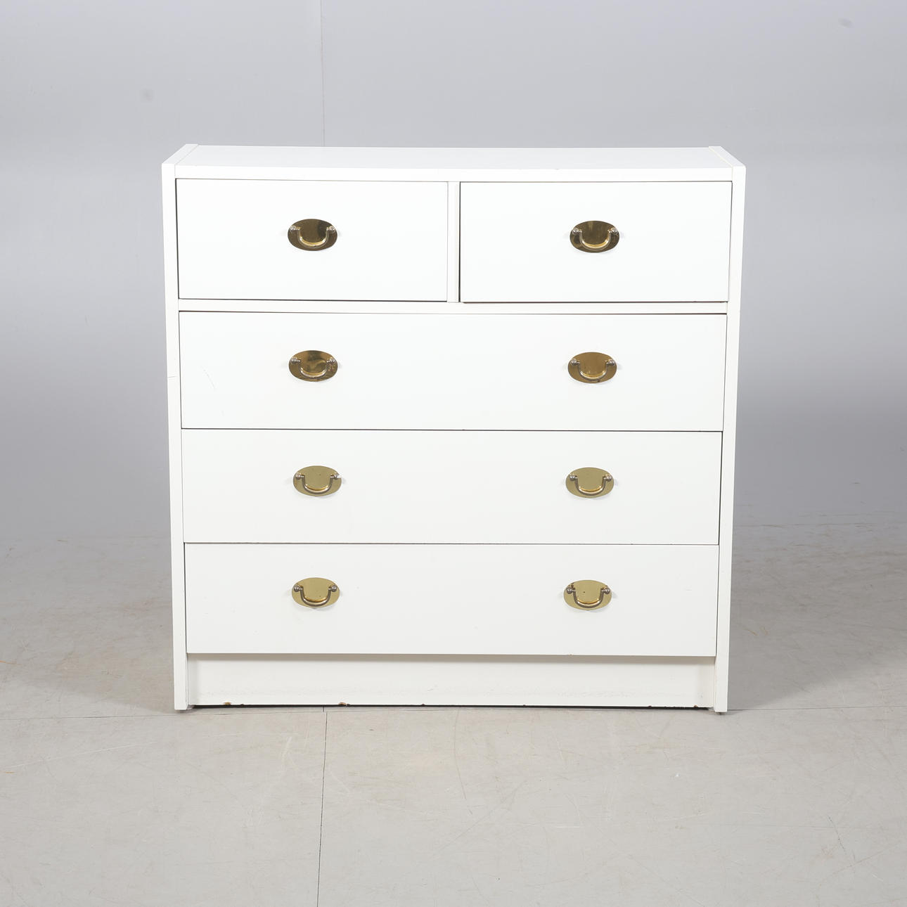 Byrå, med fem lådor, vitlackerad med draghandtag i mässing