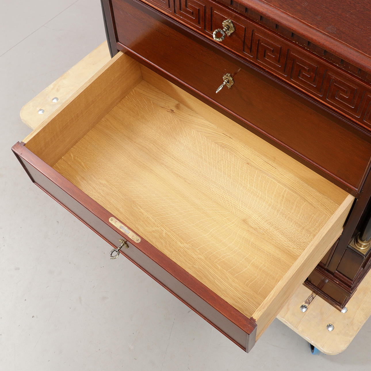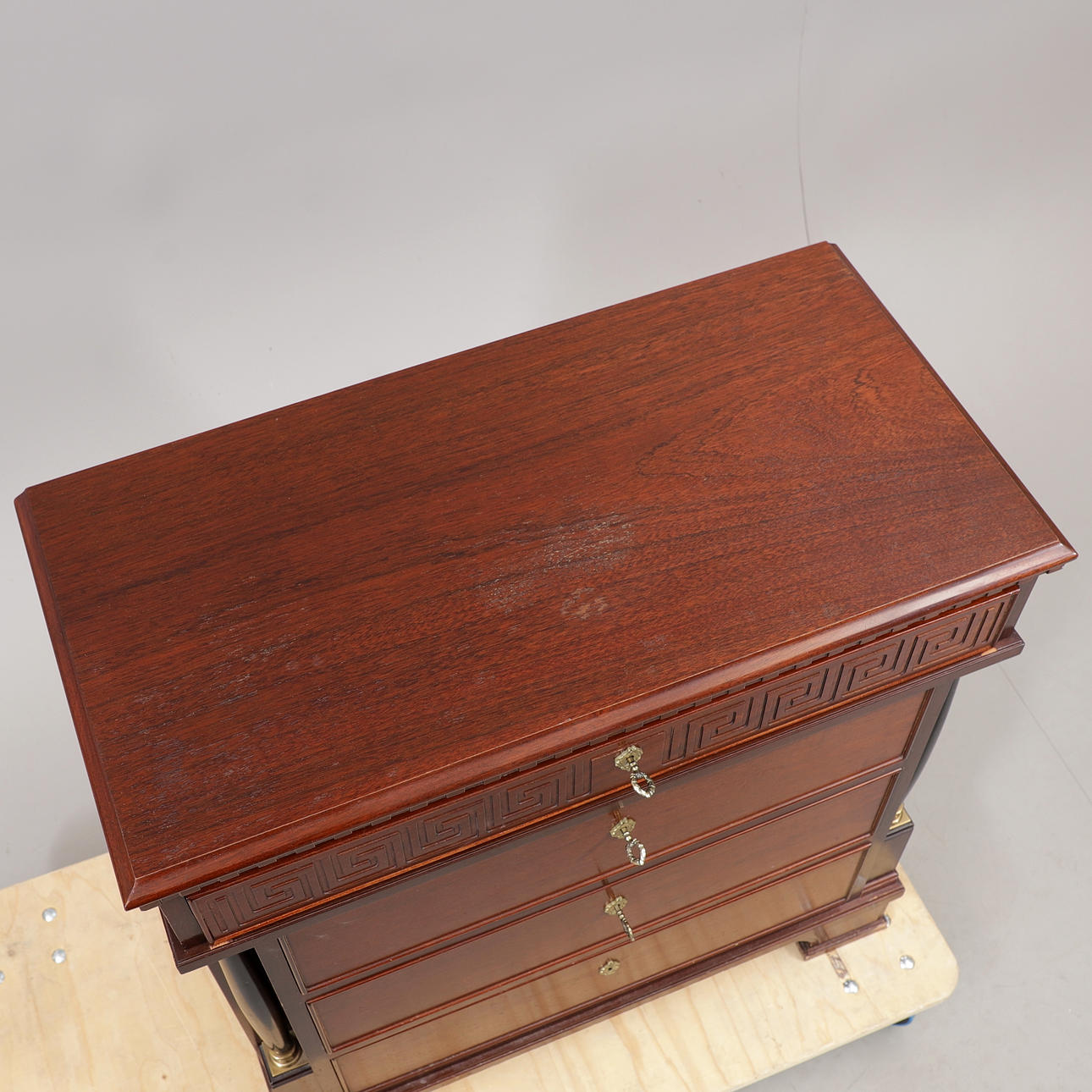 Med mässingsdetaljer. Höjd 80, bredd 80, djup 40 cm.