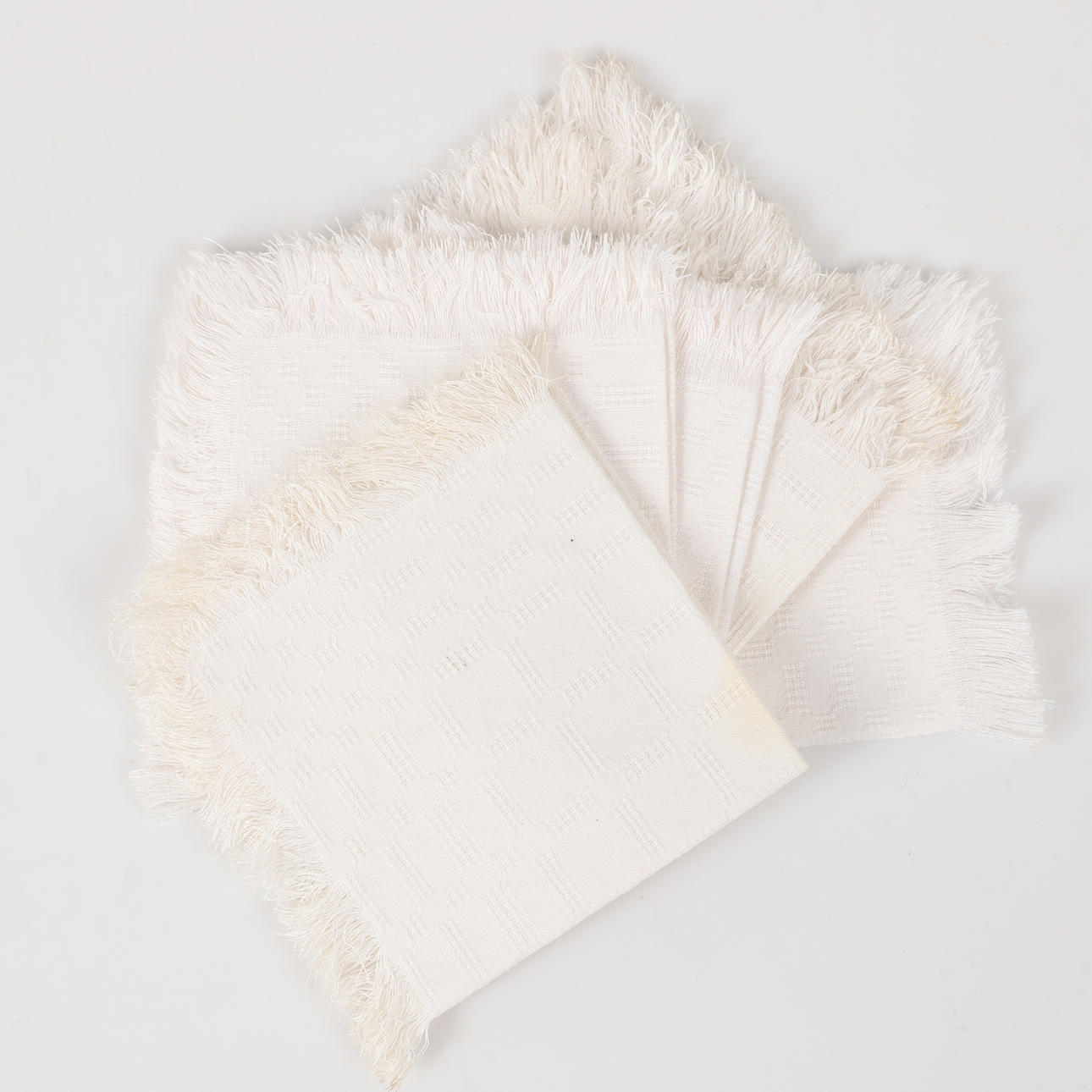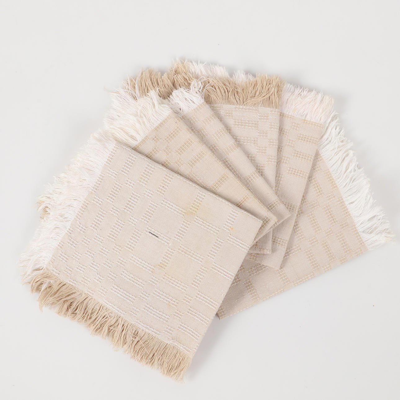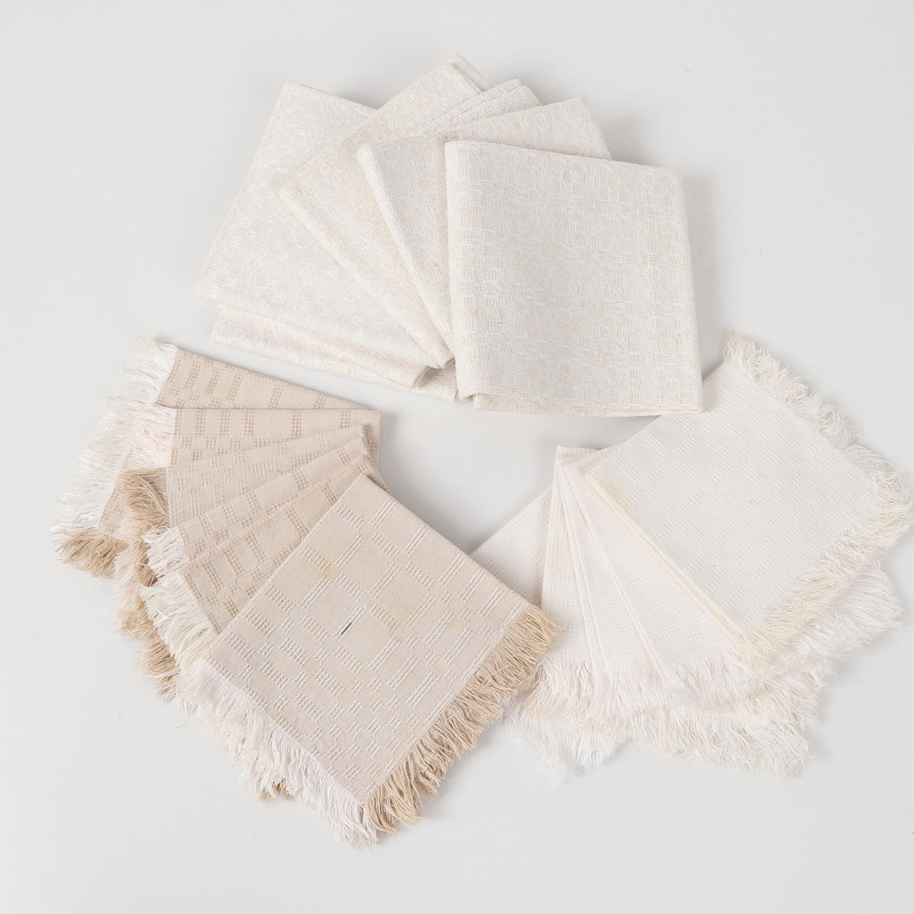 6 stycken linnedräll, ca 40 x 43 cm 6 vita med frans, ca 27 x 27 cm med frans 6 beige med frans, ca 27 x 27 cm med frans.